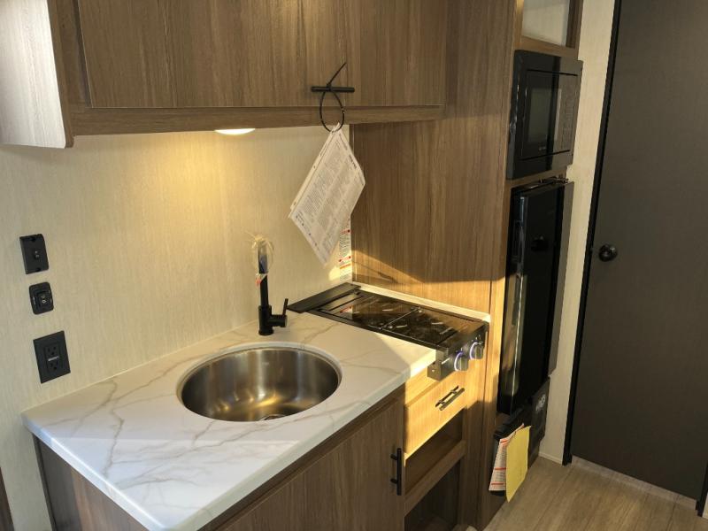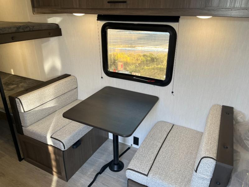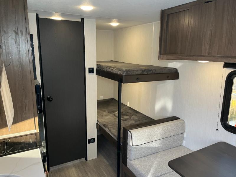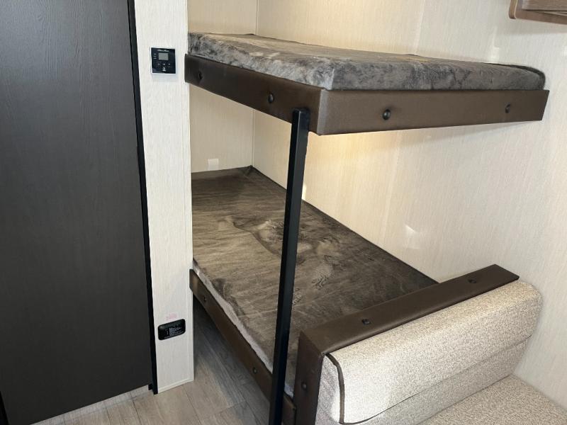 Compact and loaded with comfort and convenience for you to enjoy each and every camping trip! Because this trailer is easily towable, you'll be ready in no time. After a day of hiking, the kids will love sleeping on the bunk beds, and you can sleep on the front camp queen bed. And with enough storage space for your valuables and board games, this trailer makes camping easy!