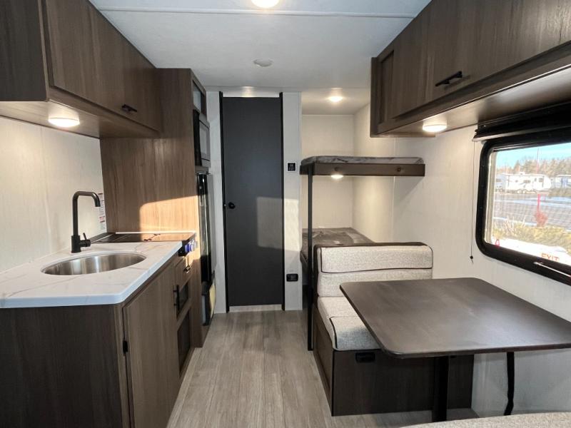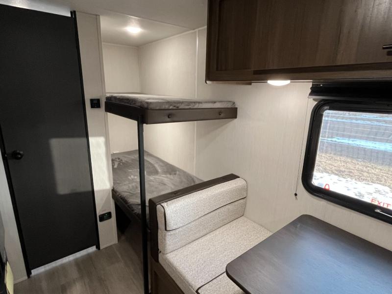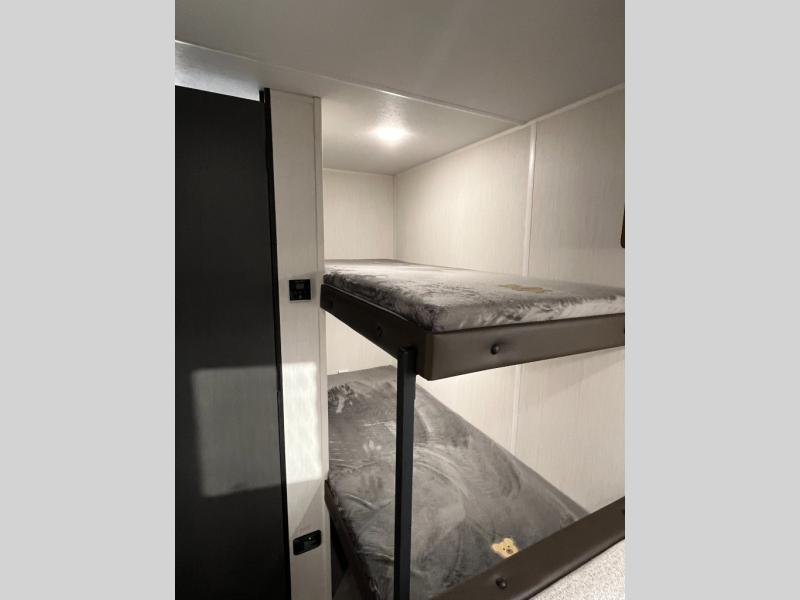 Compact and loaded with comfort and convenience for you to enjoy each and every camping trip! Because this trailer is easily towable, you'll be ready in no time. After a day of hiking, the kids will love sleeping on the bunk beds, and you can sleep on the front camp queen bed. And with enough storage space for your valuables and board games, this trailer makes camping easy!