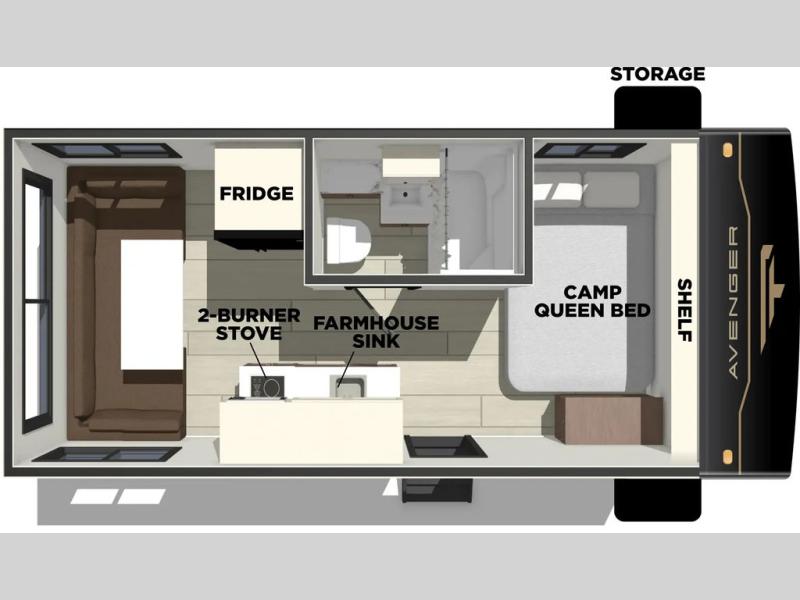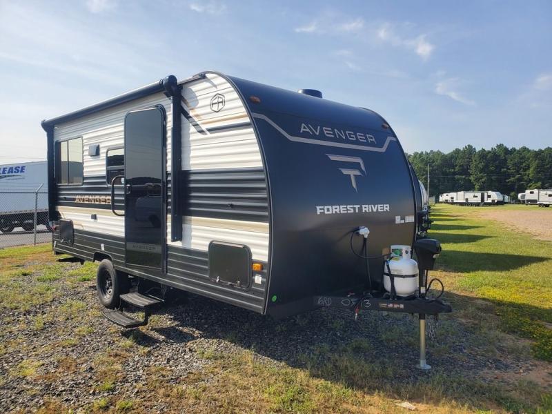 Each Avenger LT travel trailer by Prime Time includes automotive grade exterior graphics, an enclosed underbelly, and a fully walkable roof for added strength and durability. There is also a power tongue jack, an exterior shower, and exterior 110V outlets for added convenience. Head inside to enjoy seamless pressed countertops, blackout shades, designer shower surround, and plenty of storage spaces for your belongings. The roof-mount 13,500 A/C and tankless on-demand water heater will provide additional comfort, and the bedside table with 110V outlets and USB ports will keep your electronics powered up!