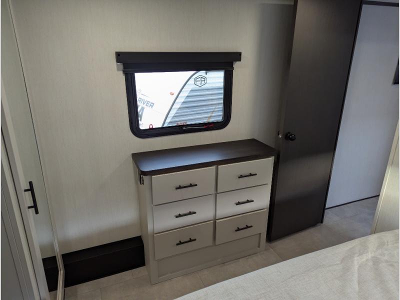 With any Crusader fifth wheel by Prime Time, you will enjoy outstanding quality and premium features! The Dexter E-Z Flex rubberized suspension equalizer will help make towing smoother than ever, and the high gloss gel coated exterior fiberglass is sure to be eye-catching. There are also thick insulated pass-through storage baggage doors outside, along with a 102" wide body, and hassle-free one-touch auto leveling. Inside, you'll find real wood cabinet doors, carpet-less slide rooms, blackout roller shades, and stain resistant, easy clean furniture. The Crusader fifth wheels are built with Eternabond construction, a one-piece PVC roof membrane, radiant foil insulation, plus rack and pinion slide systems.