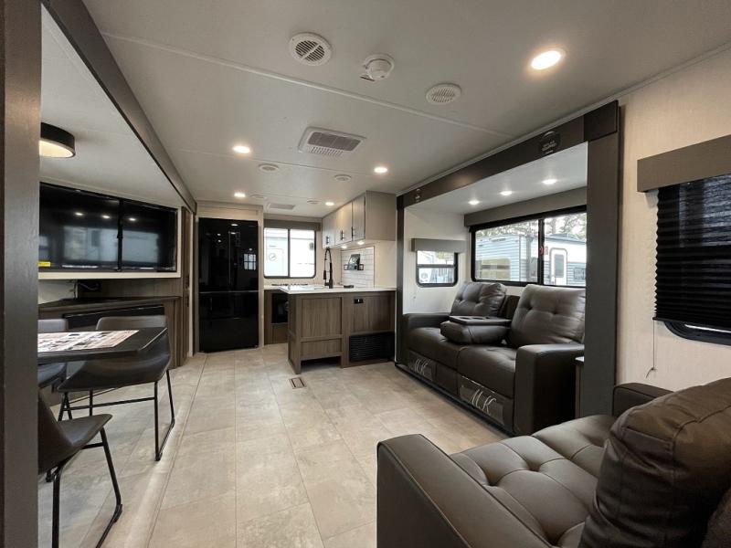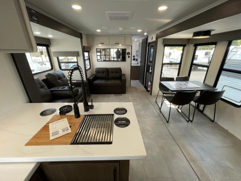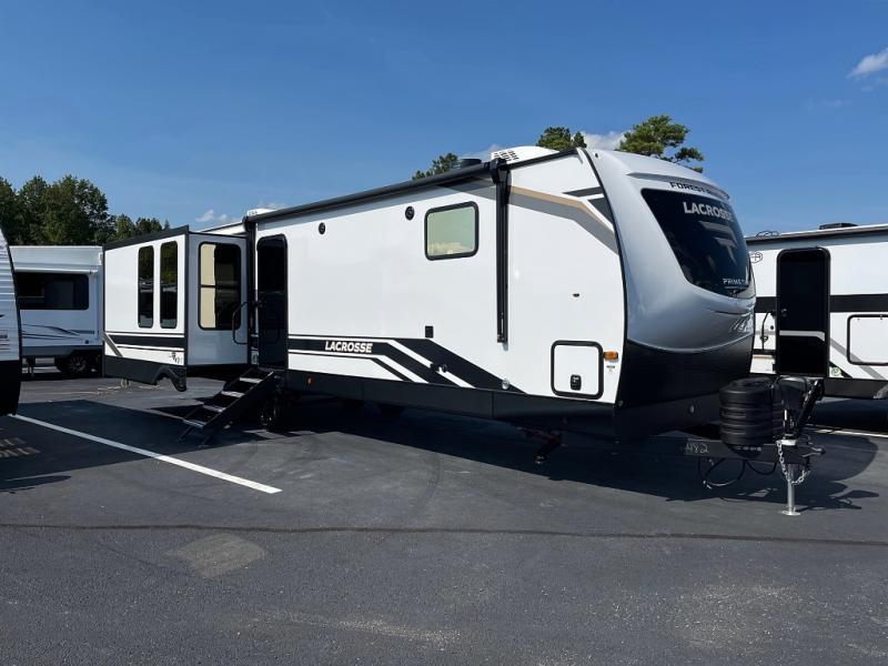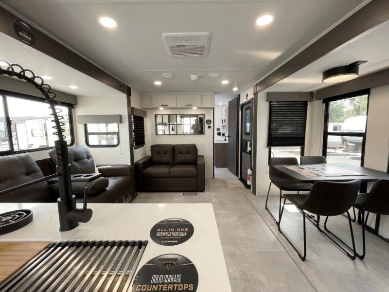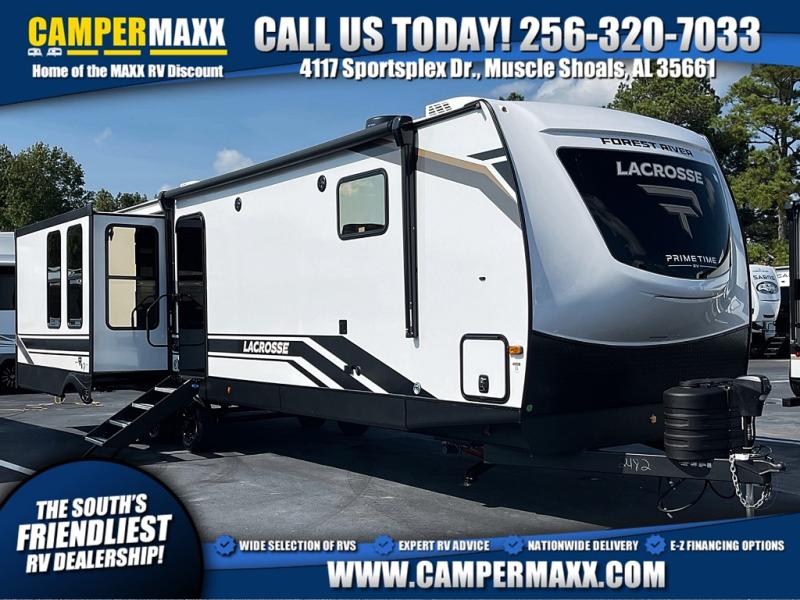 If you used to think that you had to spend a fortune to get a luxury RV, think again because the Prime Time LaCrosse travel trailer proves that you can combine luxury with value! The LaCrosse features premium solid wood core cabinetry, solid surface countertops, an 82" interior ceiling height, motion-sensor LED lighting, and USB ports. On the exterior, the fully enclosed underbelly protects your unit so that you can adventure during colder weather, and the power awning w/ LED lights is certainly a valuable feature that allows you to sit outside underneath some shade on a sunny afternoon. Come choose your model today!
