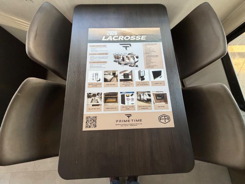 If you used to think that you had to spend a fortune to get a luxury RV, think again because the Prime Time LaCrosse travel trailer proves that you can combine luxury with value! The LaCrosse features premium solid wood core cabinetry, solid surface countertops, an 82" interior ceiling height, motion-sensor LED lighting, and USB ports. On the exterior, the fully enclosed underbelly protects your unit so that you can adventure during colder weather, and the power awning w/ LED lights is certainly a valuable feature that allows you to sit outside underneath some shade on a sunny afternoon. Come choose your model today!