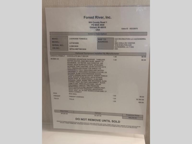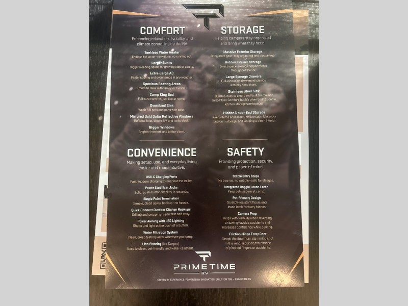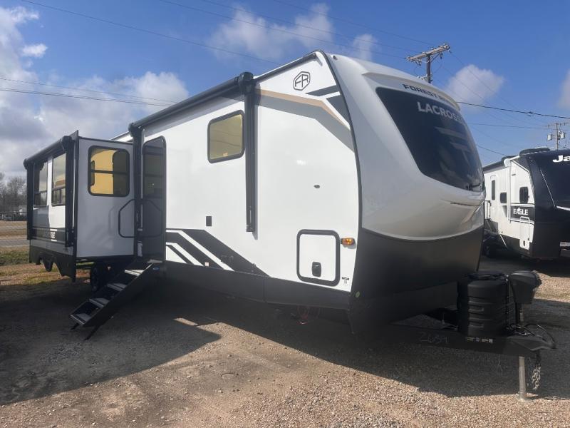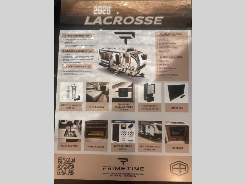 If you used to think that you had to spend a fortune to get a luxury RV, think again because the Prime Time LaCrosse travel trailer proves that you can combine luxury with value! The LaCrosse features premium solid wood core cabinetry, solid surface countertops, an 82" interior ceiling height, motion-sensor LED lighting, and USB ports. On the exterior, the fully enclosed underbelly protects your unit so that you can adventure during colder weather, and the power awning w/ LED lights is certainly a valuable feature that allows you to sit outside underneath some shade on a sunny afternoon. Come choose your model today!