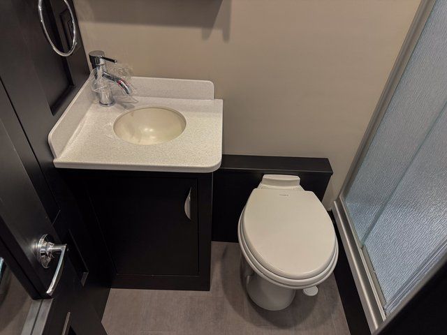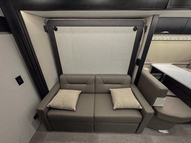 This is the perfect couples motorhome to explore the country! You will stay squeaky clean in the full rear bathroom with shower, and a large closet to store your clothes, towels, and other toiletries. Depending on what time you enter this coach will determine whether you see the sofa or the 65" x 72" Murphy bed. The kitchen has a two burner cooktop, a convection microwave, and an 8 cu. ft. refrigerator to prepare home cooked meals, and a booth dinette to enjoy them at. The 46" x 80" bunk mattress over the cab lets another member join in on the adventure and the booth dinette offers sleeping space as well.