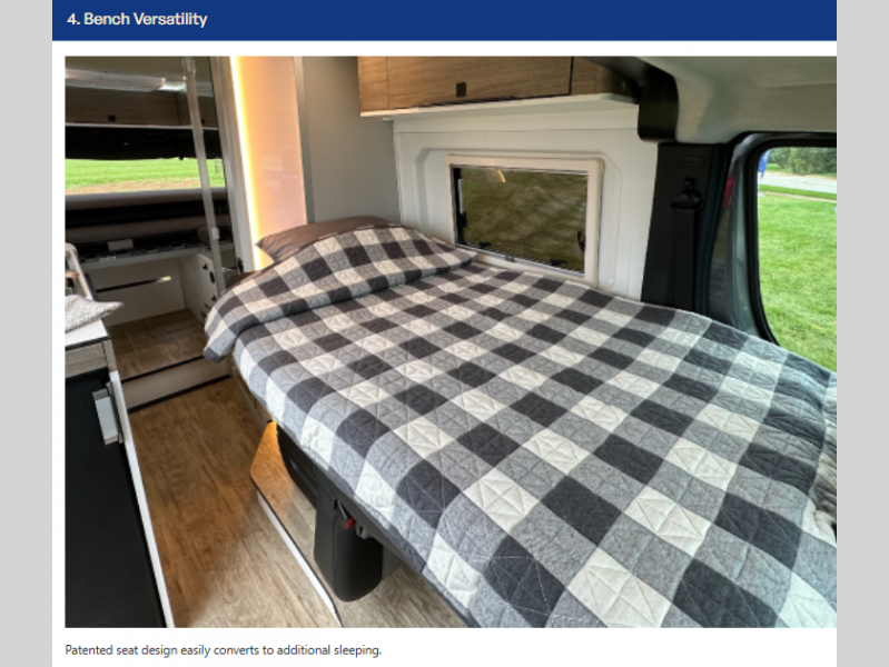 - Unique Flip-over Bench Bed in front (Patented by Westfalia)