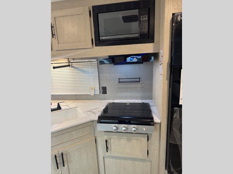 In any Shasta i-5 Edition travel trailer, you will find quality craftsmanship along with an affordable price tag. These units each feature four stabilizer jacks to make setting up easier and an enclosed underbelly for added protection as you travel. The Base Camp Package provides each unit with black tank flush, a monitor panel for quick access to the functions of your unit, a 13.5K A/C unit, and a tankless water heater for added convenience. Inside, you'll find seamless countertops, sink covers, a portable Bluetooth speaker, and more comforts!