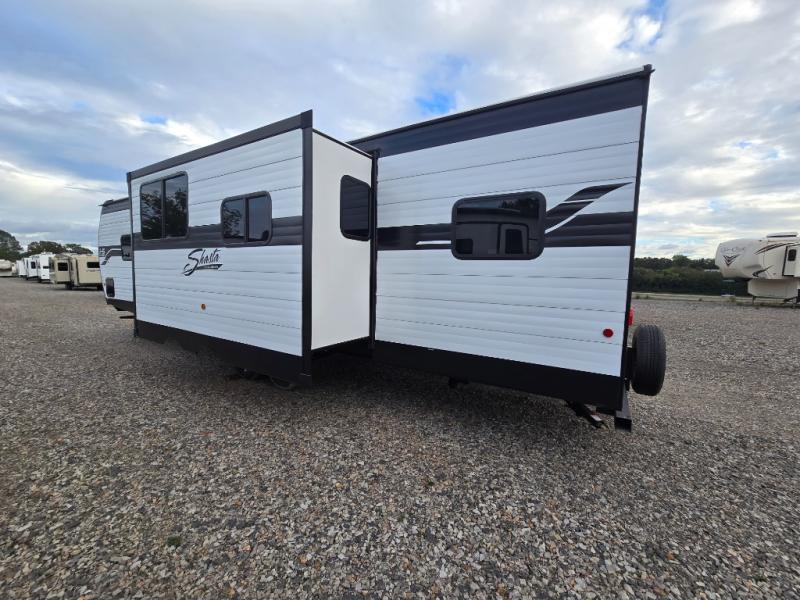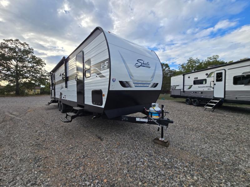 3 BEDROOM BUMPER PULL WITH WASHER/DRYER PREP!!!! Y'all this is one of the coolest bumper pulls I’ve ever seen when it comes to versatility. And the fact that its built by a name as trusted as Shasta makes it even better. This rig is super spacious and very well laid out. Built to sleep up to 9. Has a massive pantry with hookups for a washer/dryer. Huge mid bathroom with more space than you’ll ever need. And a comfortable front bedroom. Built with the BRAWN super structure that coachmen offers. Which is the best in its class by far. PVC roof membrane with lifetime warranty, steel I beam frame instead of a box frame and heavier gage aluminum siding. Just a great camper all around for a big family. Located at Dalton RV in Plumerville, AR.