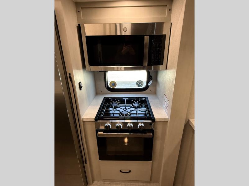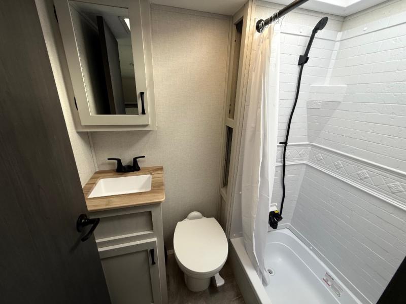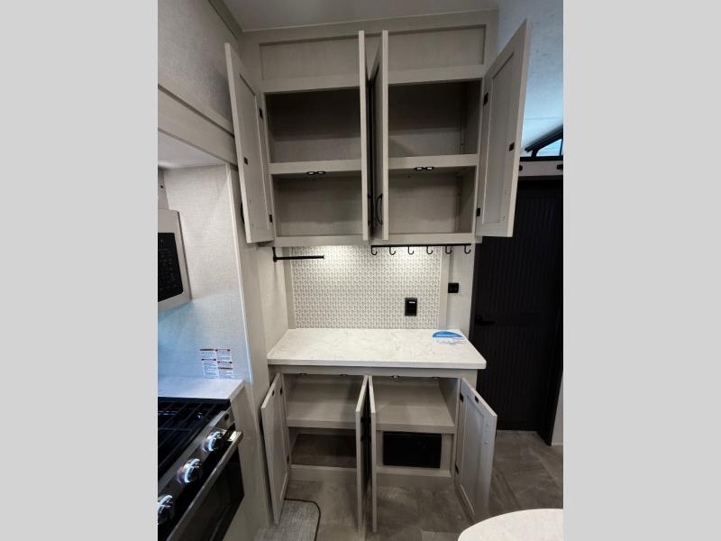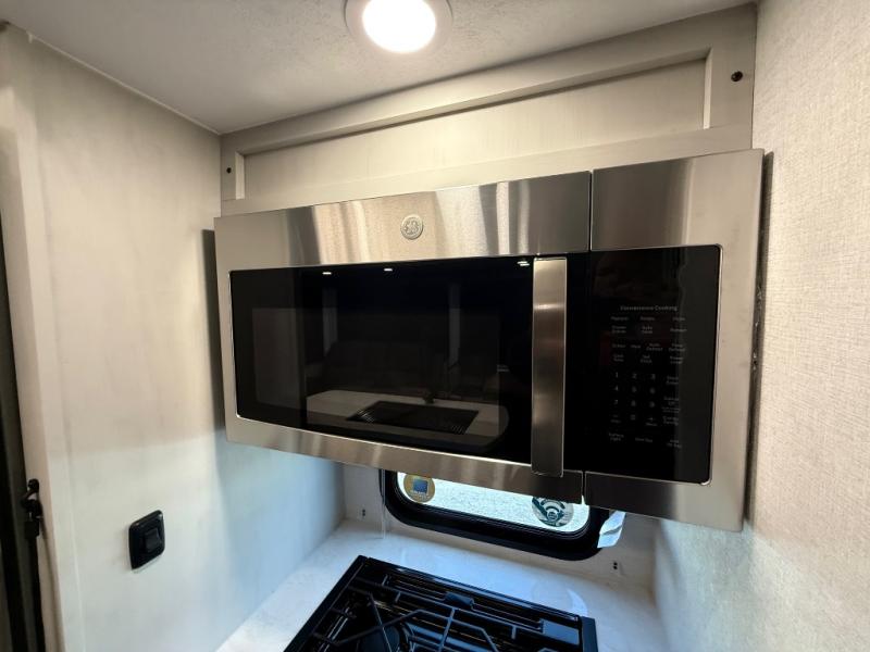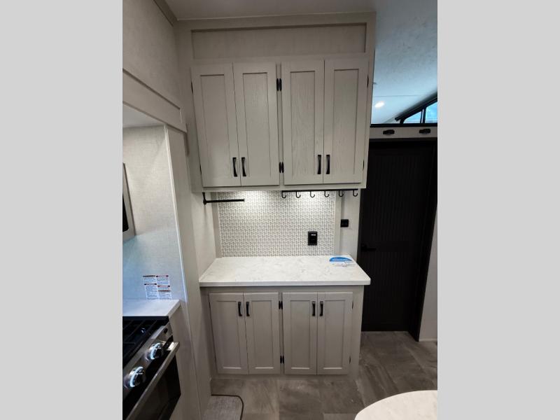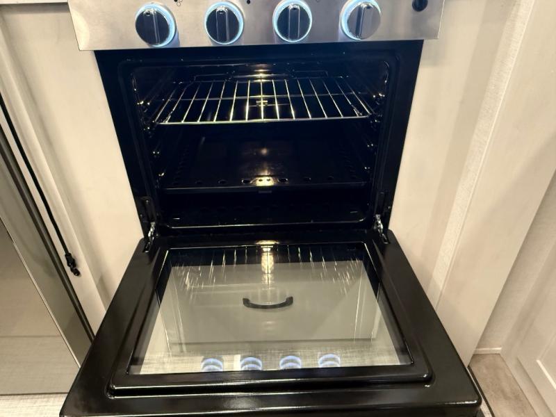 With any Phoenix mid-profile fifth wheel by Shasta RVs, the standout construction features include residential 5" truss rafters, full walk-on roof decking, AZDEL composite sidewall panels. The Weather Shield+ offers cold and hot testing, a sectionalized underbelly and heated gate valves and more so you can camp during more harsh weather if you wish. The Road Armor Suspension by Trail Air will make towing easier than ever, and the upgraded marine-style convenience center includes a black tank flush plus a hot/cold shower to wash off hiking gear. Head inside to find solid surface countertops and sink covers, an upgraded 50" 4K Smart LED TV in the living room, USB/USB-C charging ports in the bedroom, and an upgraded 60K BTU on-demand water heater to name a few comforts!