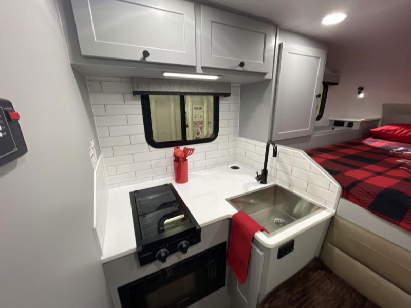 Make each journey count with this cozy truck camper! Once you stop for the day, you can make dinner on the two-burner cooktop, grab a cold drink from the 12V refrigerator, and dine at the L-shaped dinette seating. There is a sink that will allow you to clean up the dishes while your camping companion sets up a board game! The wet bath on board means you won't have to leave the camper to wash up before bed, and speaking of bed, the residential quality mattress up front is sure to bring lots of comfort! There are also bedside storage compartments and nightstands, plus an additional wardrobe to keep your clothes wrinkle-free.