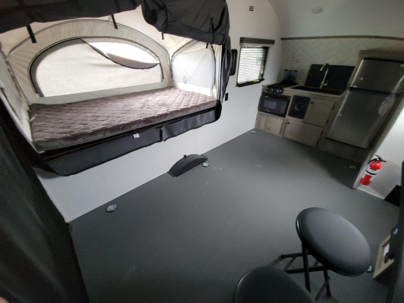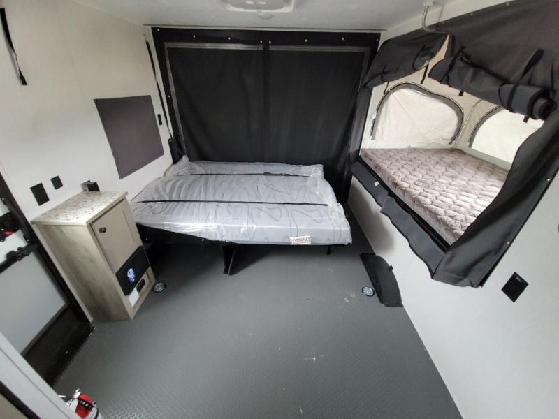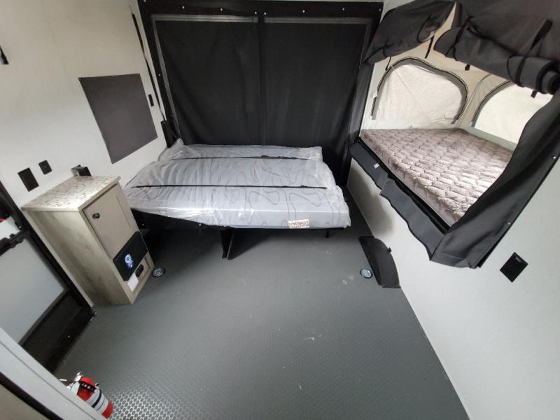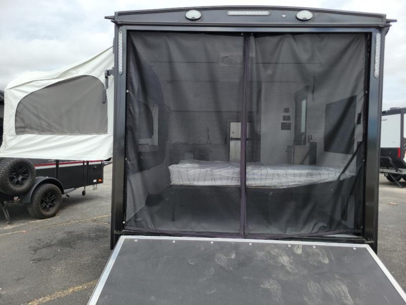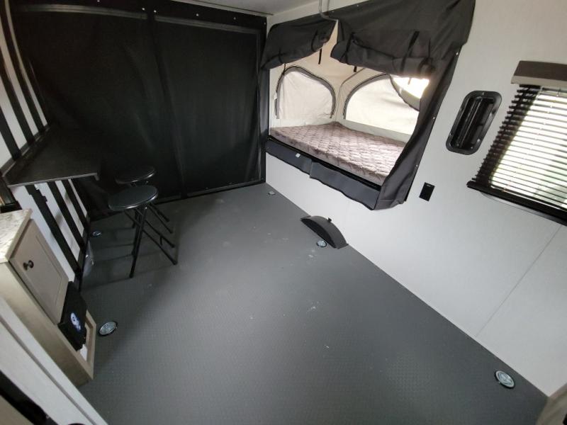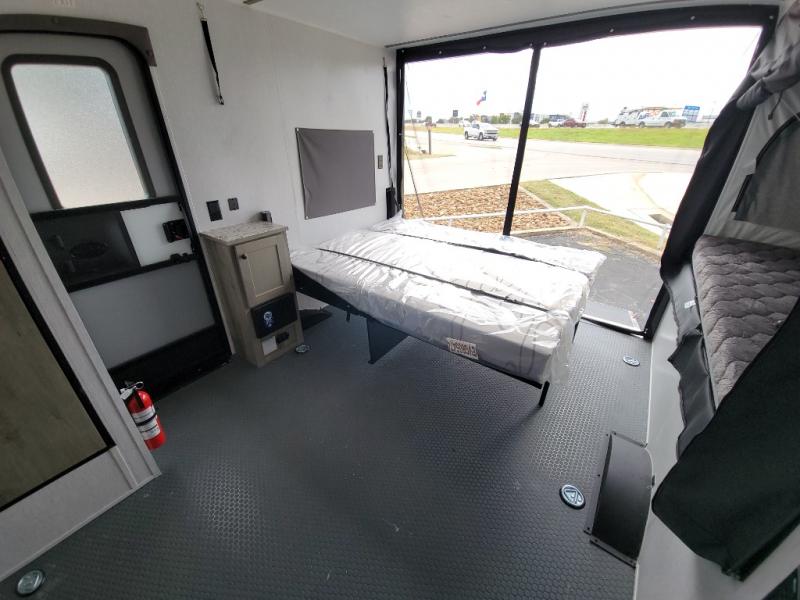 Get ready for a great camping experience where you can take along your favorite ride-on toys, kayaks, or other items that you may not normally have room to load as this toy hauler features a 6' 9" cargo width and 10' 11" cargo length. Once unloaded, set up with the rear bed that will make for a great night's rest. The front of this unit is shared with the wet bath and kitchen. Here, you can make meals on the two burner stove or in the microwave oven, and there is a refrigerator for perishables. And an optional tent bed can be added on this model if need additional sleeping space!