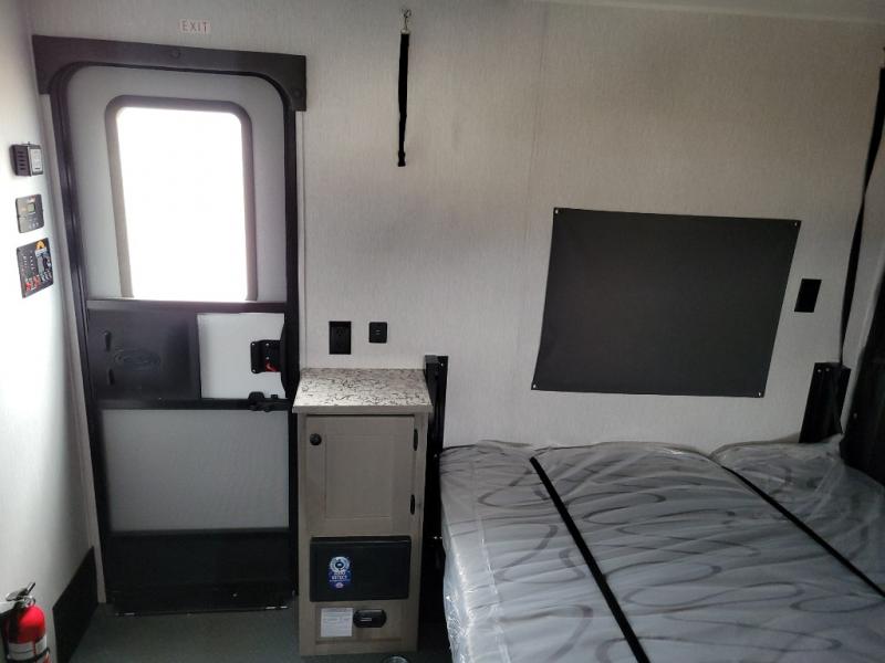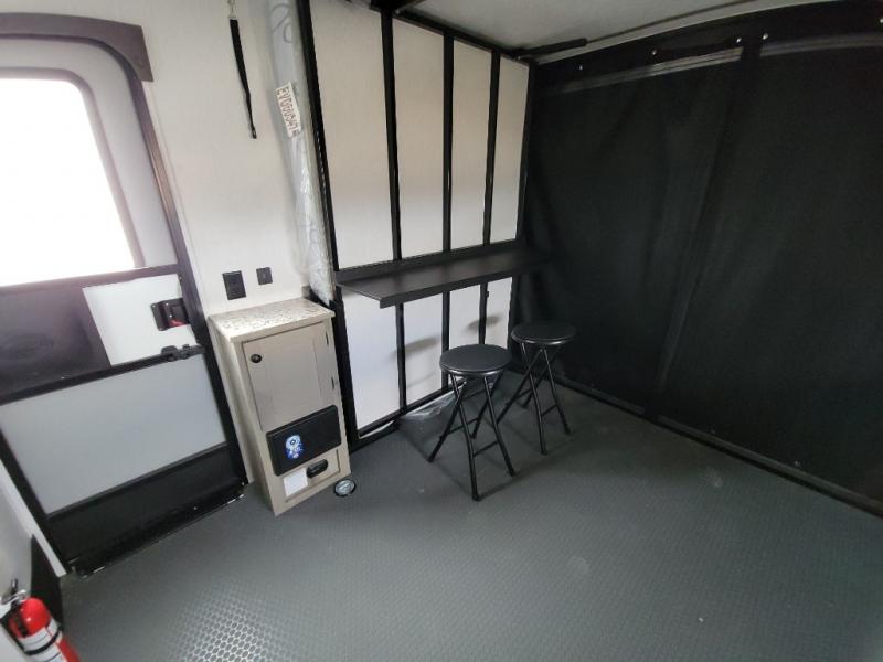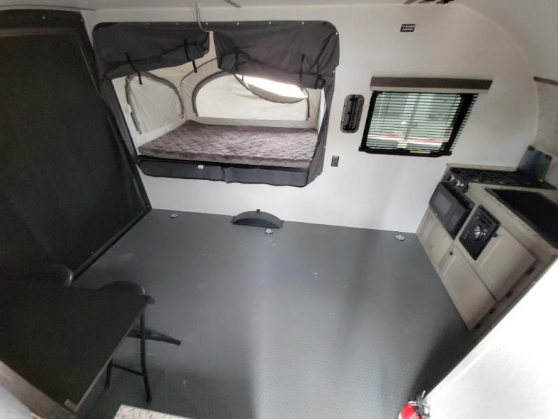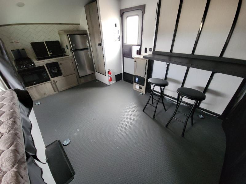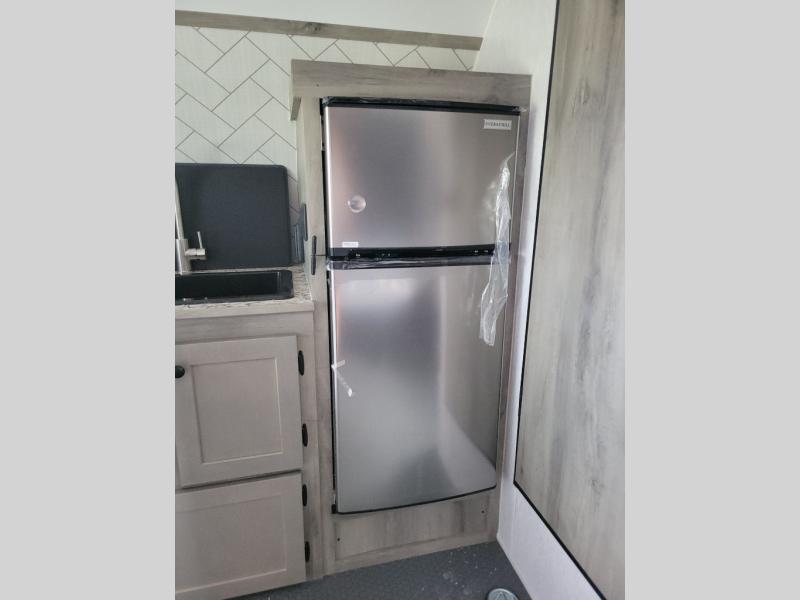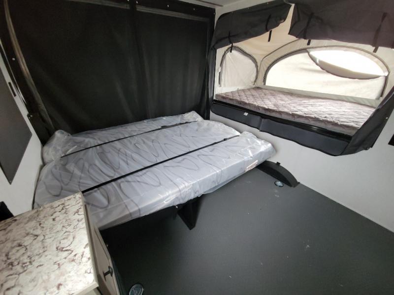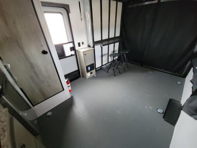 Get ready for a great camping experience where you can take along your favorite ride-on toys, kayaks, or other items that you may not normally have room to load as this toy hauler features a 6' 9" cargo width and 10' 11" cargo length. Once unloaded, set up with the rear bed that will make for a great night's rest. The front of this unit is shared with the wet bath and kitchen. Here, you can make meals on the two burner stove or in the microwave oven, and there is a refrigerator for perishables. And an optional tent bed can be added on this model if need additional sleeping space!