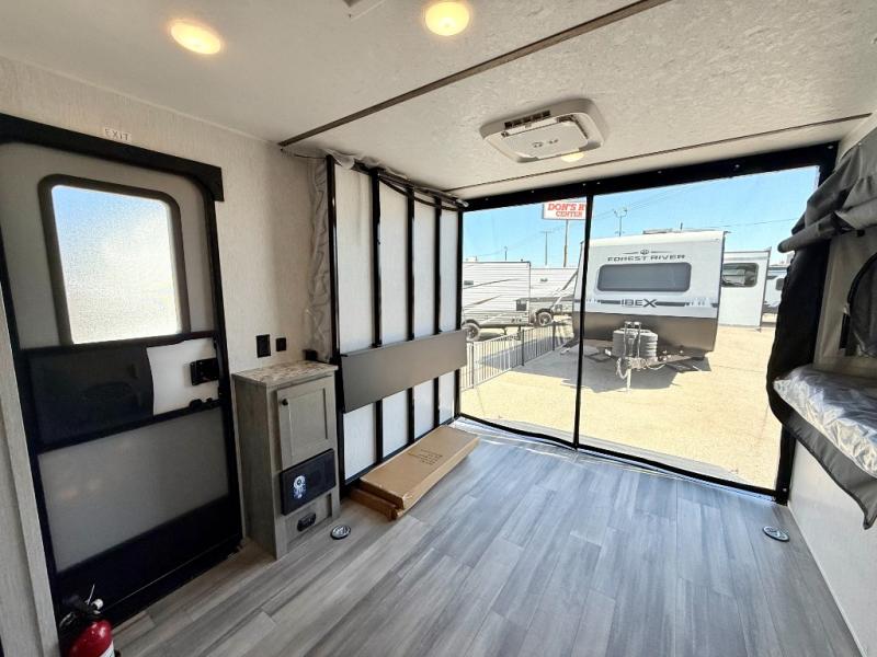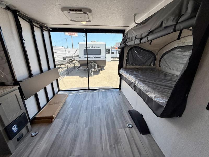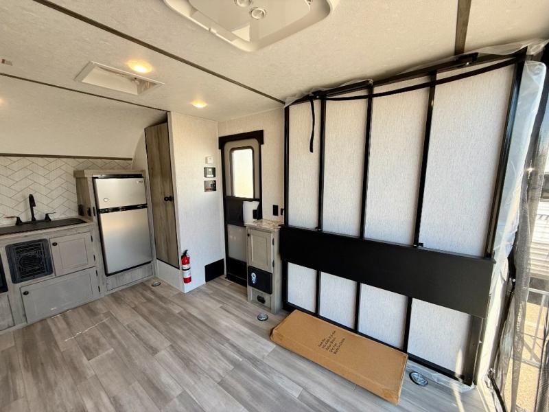 Get ready for a great camping experience where you can take along your favorite ride-on toys, kayaks, or other items that you may not normally have room to load as this toy hauler features a 6' 9" cargo width and 10' 11" cargo length. Once unloaded, set up with the rear bed that will make for a great night's rest. The front of this unit is shared with the wet bath and kitchen. Here, you can make meals on the two burner stove or in the microwave oven, and there is a refrigerator for perishables. And when the optional tent bed is added on this model, you can sleep more campers!