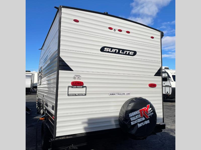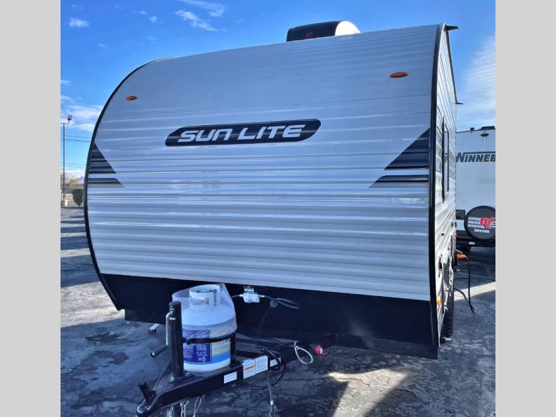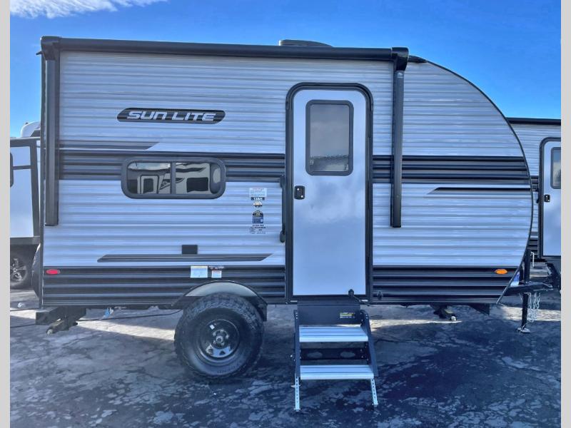 Each Sun Lite LTD travel trailer by Sunset Park RV is made with flexibility in mind. These lightweight models weigh under 3,000 lbs. for easy towing, and they offer best-in class interior storage for all your belongings. They are built with a one-piece PVC roof membrane and a durable rock guard that will help protect against rock and debris on the way to the campground. There is also an electric awning outside, along with a 100-watt solar kit, an outside shower, and more convenient features. You'll find a power roof vent in the bath, stylish window treatments, ball bearing drawer guides, and LED lights to name a few interior comforts.