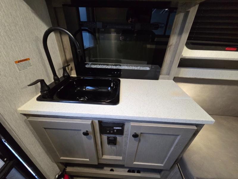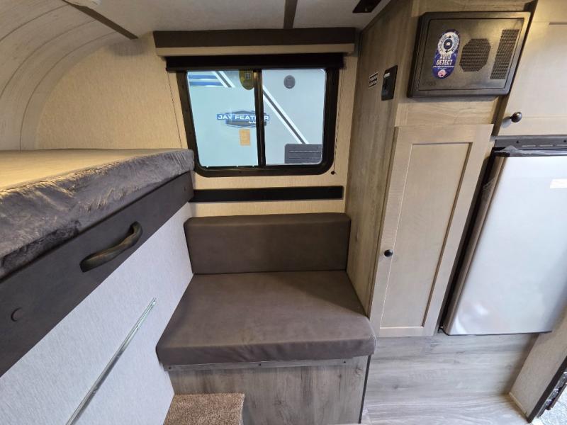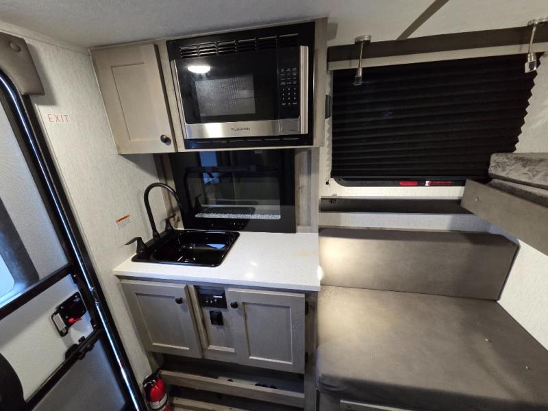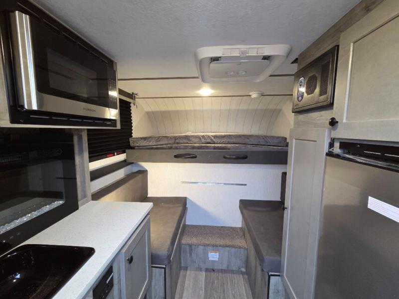 This truck camper is simple and to the point! You'll have somewhere to rest your head each night thanks to the front bed and booth dinette that will double as both seating and sleeping space. Once you've made dinner on your own outdoor grill, you can wash up using the indoor sink, and there is counter space here also. You'll appreciate the added safety features that include a smoke detector, fire extinguisher, and a C/O detector.