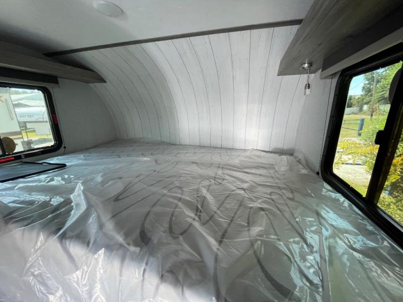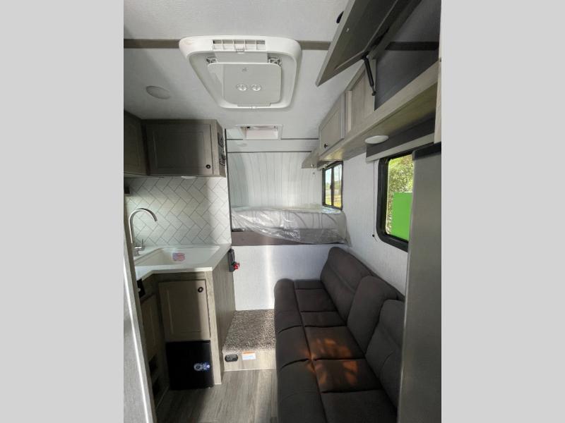 With any Sun Trek truck camper by Sunset Park RV, you will find a durable camper made to last thanks to the vacuum bonded laminated sidewalls and one-piece PVC roof membrane. You will also appreciate your choice of white or gray sidewalls, plus there are manual jacks outside and a 100-watt solar panel for some off-grid power. Inside, a power roof vent will help keep air moving, and you can choose an optional roof A/C if you enjoy camping in the summertime. Additional interior comforts include LED lights, tinted windows and solid surface countertops with a sink cover!