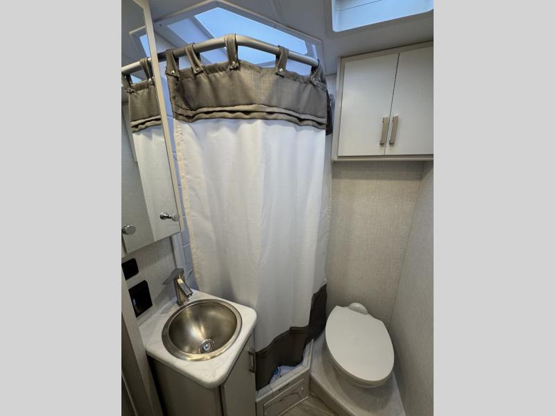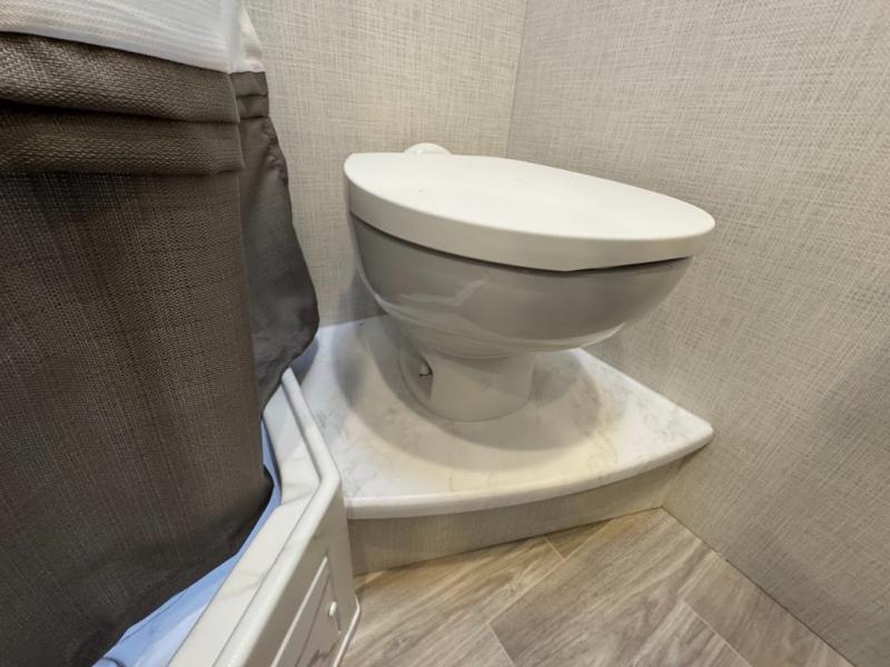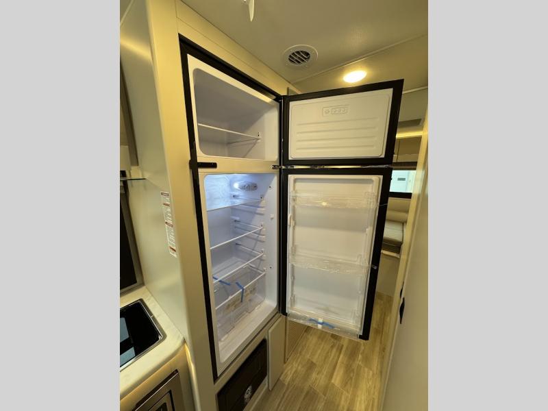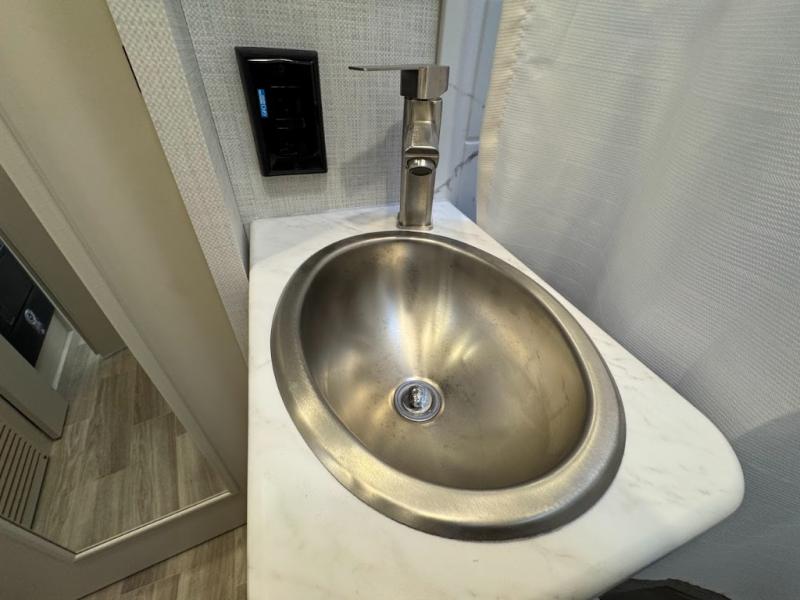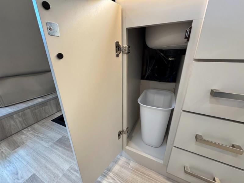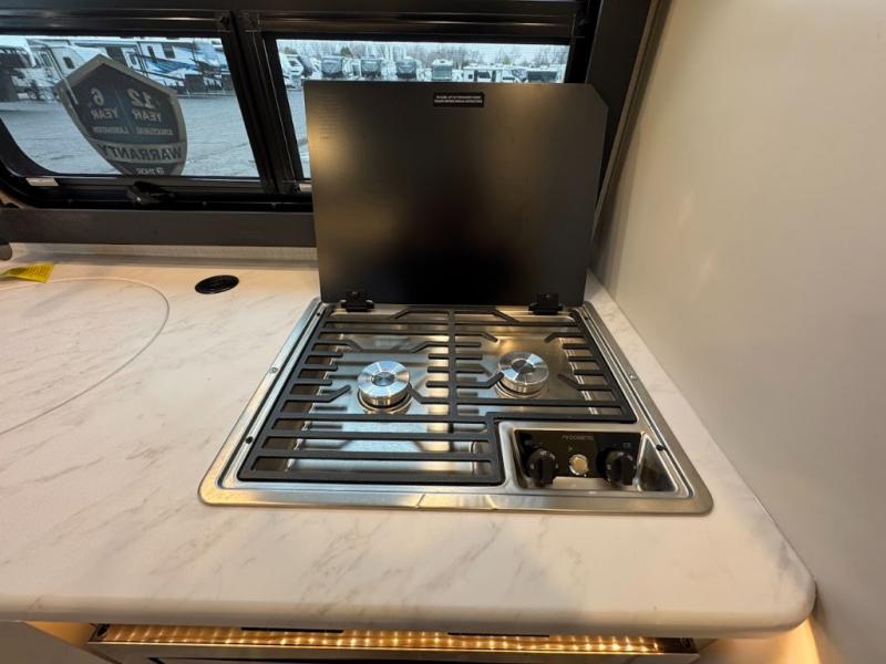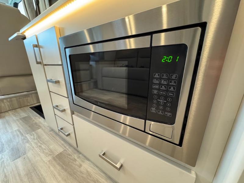 Plan to see it all in this Class A gas coach that can sleep four people each night. The sofa slide out includes a 32" Smart TV across from the sofa to watch your favorite shows. You will also find a 32" Smart TV in the rear bedroom, along with twin beds that convert to a king-size bed if you like. The spacious full bath includes a stainless steel sink, a shower skylight, and convenient robe hooks. Breakfast, lunch, and dinner can be made on the two burner gas cooktop or in the convection microwave with an air fryer, and the 12V double door refrigerator can store your perishables for the whole week.