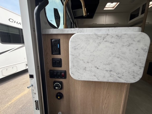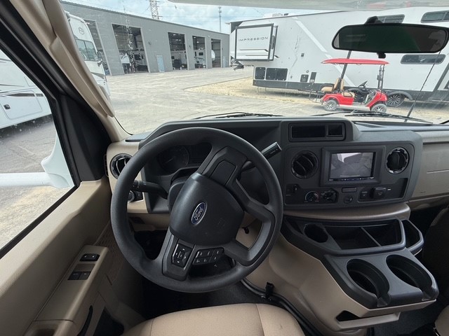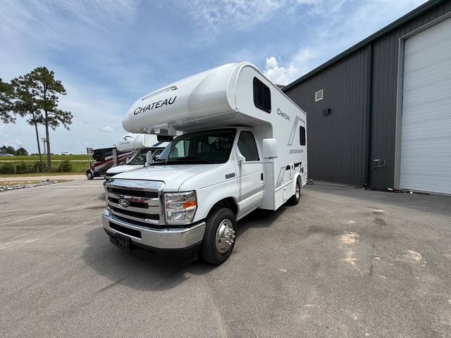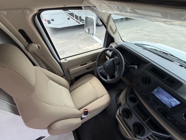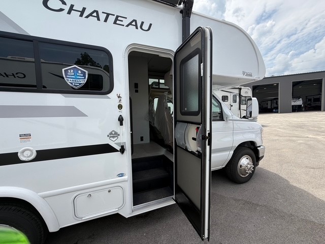 With any Chateau ESpec Class C gas motorhome by Thor Motor Coach, you will find convenient amenities, a modern interior, and a reliable Ford E-Series chassis, with an optional Chevy chassis on select models to power your adventures. There is welded tubular aluminum roof and sidewall cage construction, a one-piece fiberglass front cap, and a premium one-piece domed roof membrane for added strength. Residential vinyl flooring will be easy to keep clean, and you'll love the sleek look of the Hampton Collection two-toned cabinets. These motorhomes also include a 50 State 4.0 kW dual gas/LP generator and a 30-amp shoreline power cord to keep you going, along with a tankless water heater and 13,500 roof front A/C to ensure your comfort!