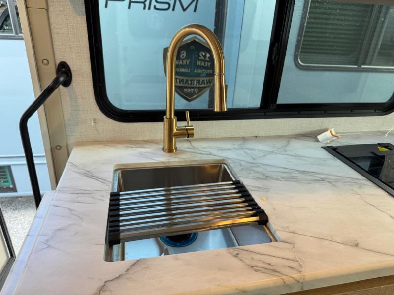 With any Chateau ESpec Class C gas motorhome by Thor Motor Coach, you will find convenient amenities, a modern interior, and a reliable Ford E-Series chassis, with an optional Chevy chassis on select models to power your adventures. There is welded tubular aluminum roof and sidewall cage construction, a one-piece fiberglass front cap, and a premium one-piece domed roof membrane for added strength. Residential vinyl flooring will be easy to keep clean, and you'll love the sleek look of the Hampton Collection two-toned cabinets. These motorhomes also include a 50 State 4.0 kW dual gas/LP generator and a 30-amp shoreline power cord to keep you going, along with a tankless water heater and 13,500 roof front A/C to ensure your comfort!