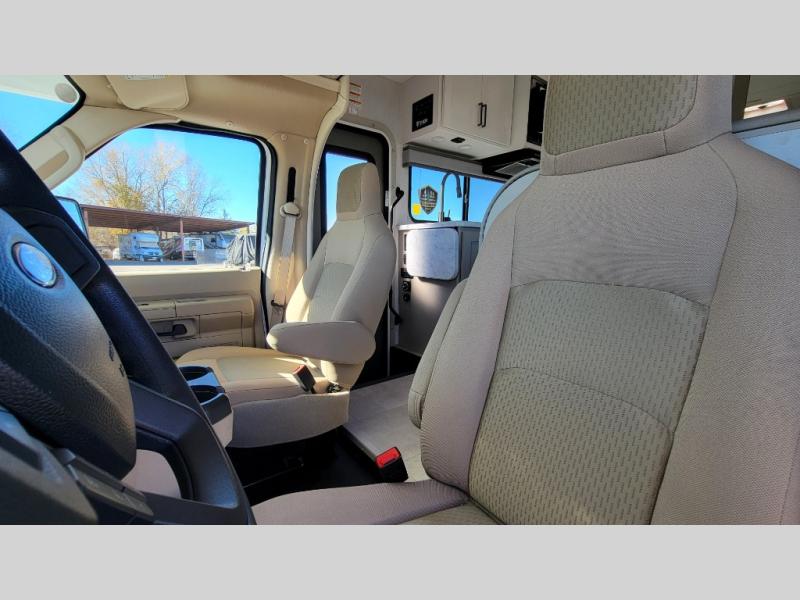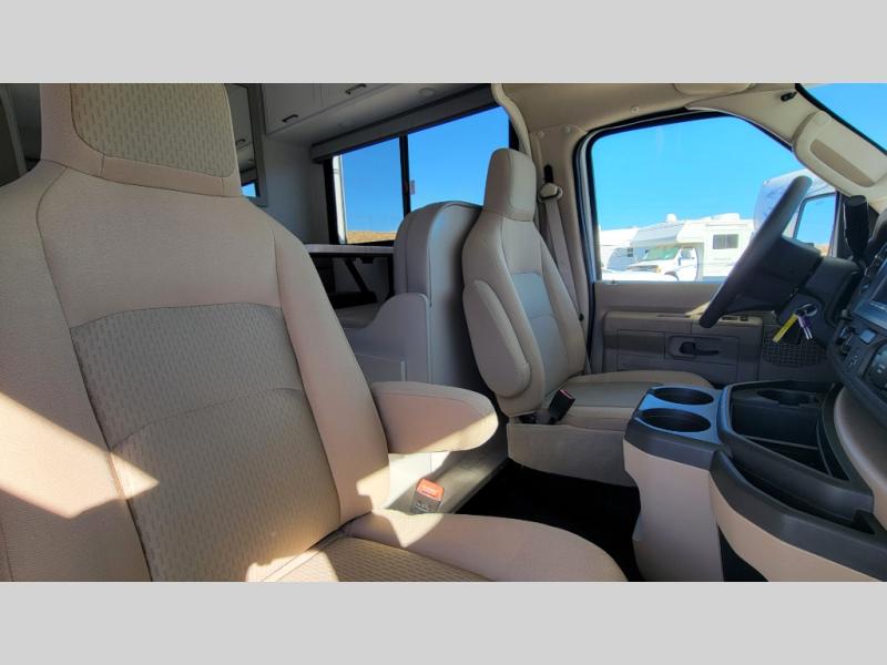 With any Chateau ESpec Class C gas motorhome by Thor Motor Coach, you will find convenient amenities, a modern interior, and a reliable Ford E-Series chassis, with an optional Chevy chassis on select models to power your adventures. There is welded tubular aluminum roof and sidewall cage construction, a one-piece fiberglass front cap, and a premium one-piece domed roof membrane for added strength. Residential vinyl flooring will be easy to keep clean, and you'll love the sleek look of the Hampton Collection two-toned cabinets. These motorhomes also include a 50 State 4.0 kW dual gas/LP generator and a 30-amp shoreline power cord to keep you going, along with a tankless water heater and 13,500 roof front A/C to ensure your comfort!