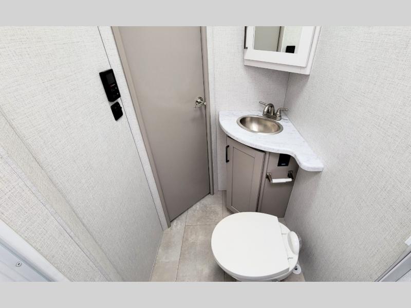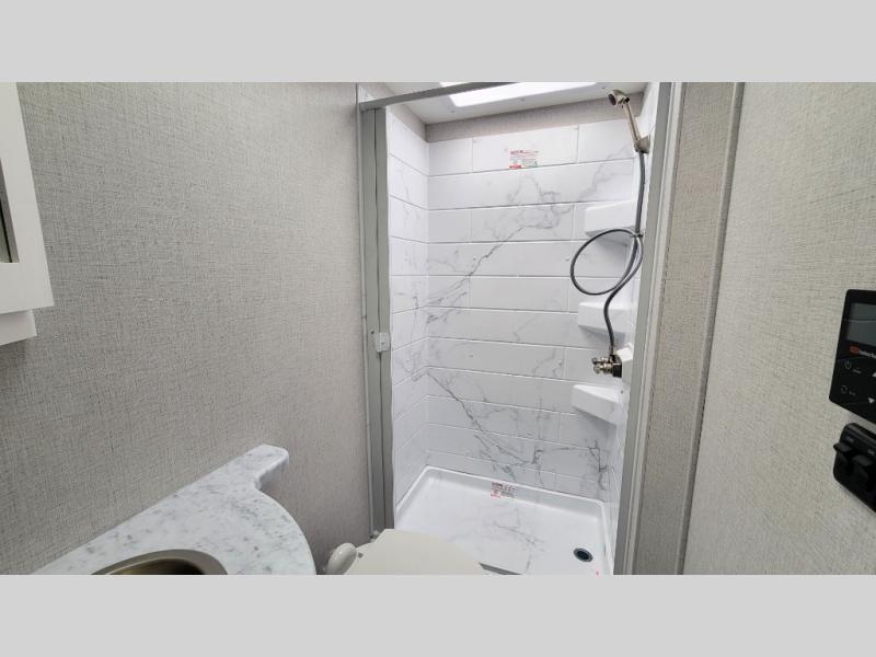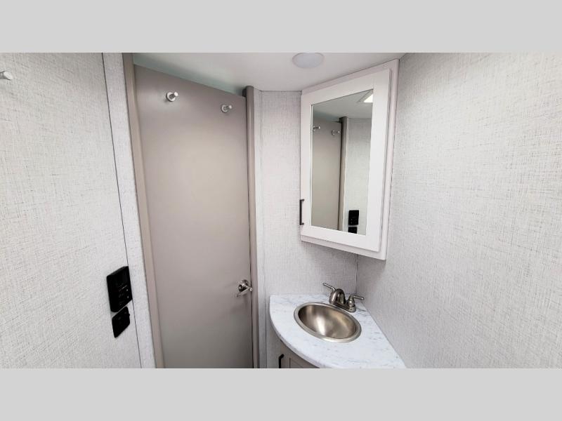 It won't be hard to find comfort in this coach for five! You can freshen up in the rear corner full bath once you've set up camp, then make lunch on the two burner gas cooktop or convection microwave with an air fryer. There is also a 12V refrigerator for cold items and a flip-up countertop for more space. Whether you dine at the Dream Dinette or take your plate outdoors under the 15' power awning, you're sure to have a great time in this motorhome. There is a semi-private bedroom with a 60" x 74" RV queen bed slide and bedroom TV prep if you want the option to watch movies in bed. And your guests can take the Dream Dinette and cab-over bunk at night!