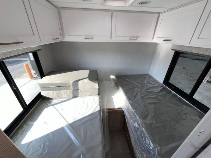 It won't be hard to find comfort in this coach for five! You can freshen up in the mid-coach full bath once you've set up camp, then make lunch on the two burner gas cooktop or convection microwave with an air fryer. There is also a 12V refrigerator for cold items and a flip-up countertop for more space. Whether you dine at the Dream Dinette slide out or take your plate outdoors under the 17' 6" power awning, you're sure to have a great time in this motorhome. The semi-private rear bedroom includes a privacy curtain, two twin beds with a king-size bed conversion, plus TV prep if you want the option to watch shows in bed. And any guests you may have can sleep on the dinette and 52" x 96" cab-over sleeping space!