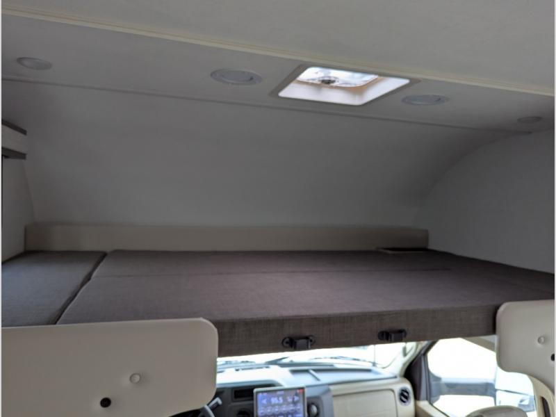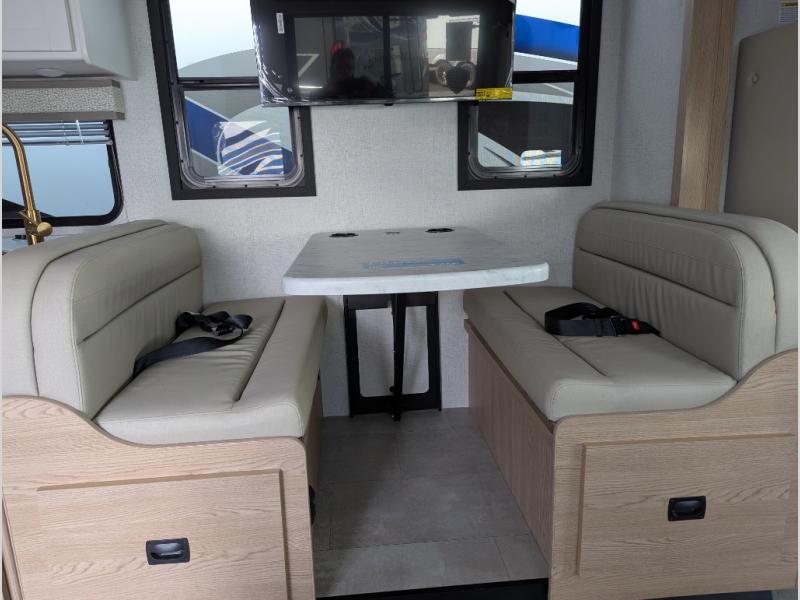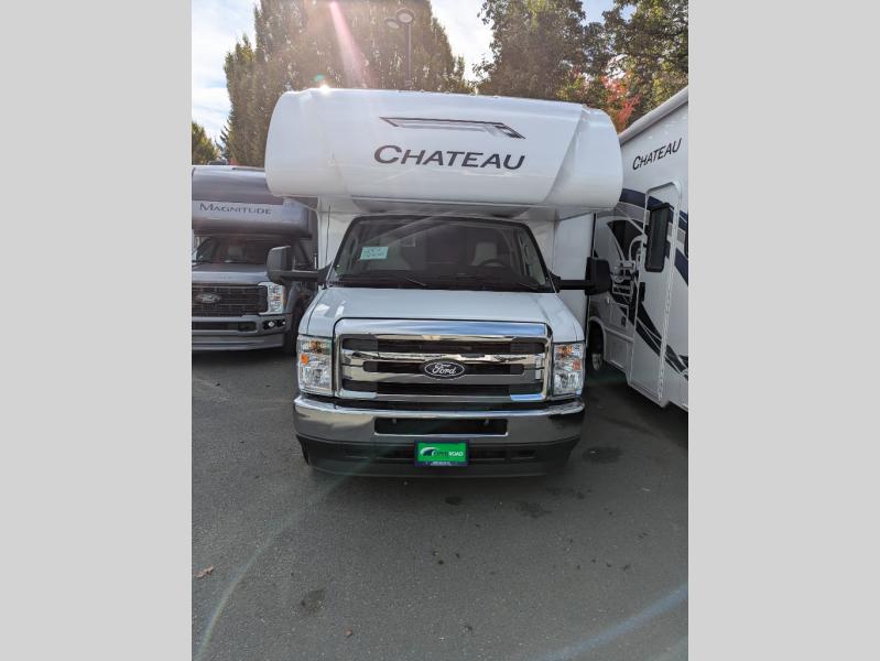 Experience a smooth ride to each destination with the Thor Motor Coach Chateau Class C gas motorhomes! There is a Ford E-Series chassis and each model includes an 8,000 lb. trailer hitch to bring the family car along. They are constructed with a welded tubular aluminum roof, sidewall cage construction, vacu-bond laminated roof, walls, and floor with block foam insulation to keep the heat and air conditioning inside. The slick fiberglass exterior with graphics package and black framed windows are sure to turn heads down the highway too. Inside, you'll be met with residential vinyl flooring, premium window privacy shades, a power bath vent, and pressed laminate kitchen countertops. There is even a tankless water heater for endless hot showers, a 4.0 kw dual gas/LP generator to keep you going, and a 100-watt solar charging system for off-grid capabilities!