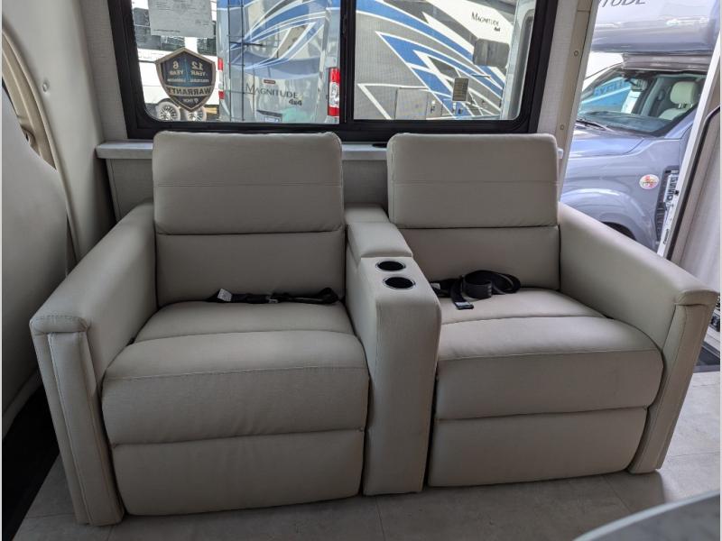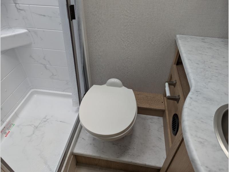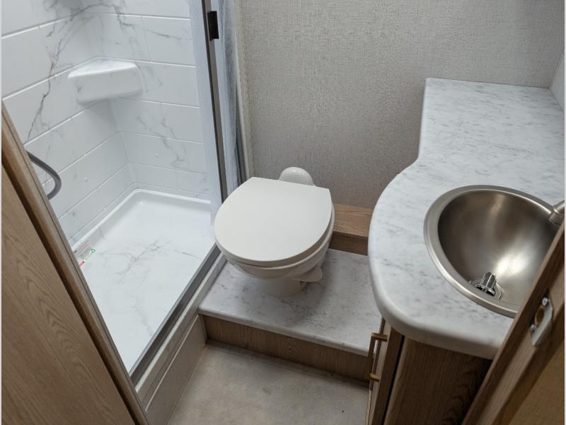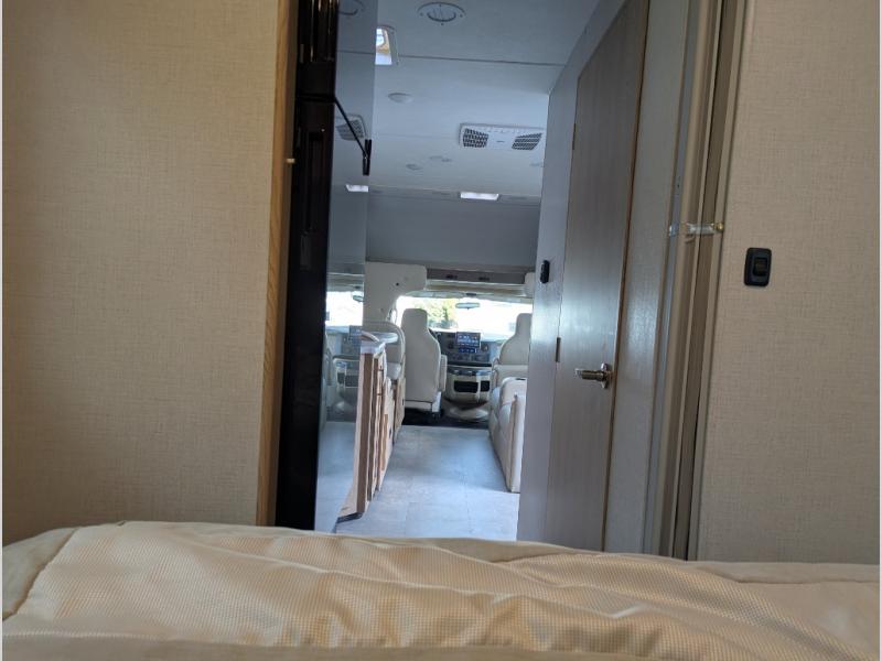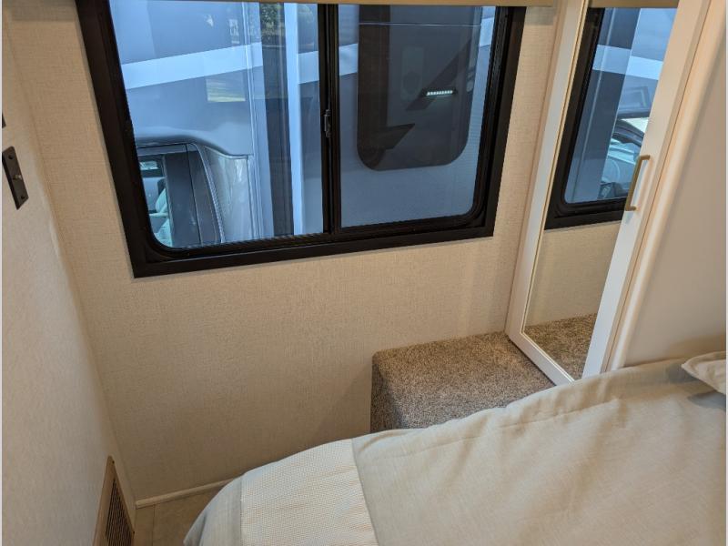 You will have everything you need for a comfortable vacation in this motorhome! Starting with the rear private bedroom which has a 60" x 74" queen bed with closets on either side of it and TV prep. As you step down from the bedroom, you will notice the full bathroom to your right which has a 24" x 36" shower with a skylight above it for added natural lighting. The fully equipped kitchen has everything you need to prepare your best home cooked meals, and you can enjoy them at the 71" Dream Dinette then relax on the 68" jackknife sofa across from the 40" TV. You could even add an optional exterior 32" TV and optional exterior kitchen to enhance the exterior!