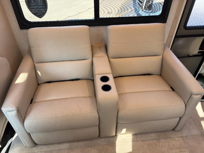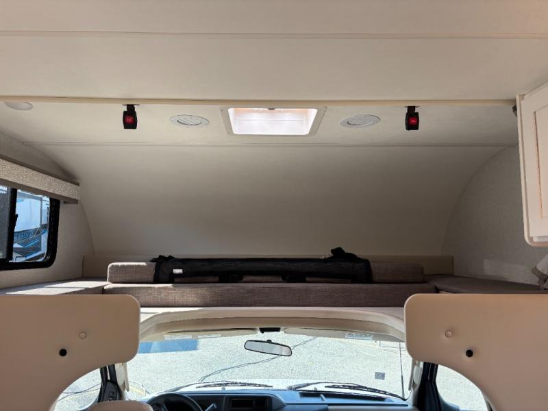 Experience a smooth ride to each destination with the Thor Motor Coach Chateau Class C gas motorhomes! There is a Ford E-Series chassis and each model includes an 8,000 lb. trailer hitch to bring the family car along. They are constructed with a welded tubular aluminum roof, sidewall cage construction, vacu-bond laminated roof, walls, and floor with block foam insulation to keep the heat and air conditioning inside. The slick fiberglass exterior with graphics package and black framed windows are sure to turn heads down the highway too. Inside, you'll be met with residential vinyl flooring, premium window privacy shades, a power bath vent, and pressed laminate kitchen countertops. There is even a tankless water heater for endless hot showers, a 4.0 kw dual gas/LP generator to keep you going, and a 100-watt solar charging system for off-grid capabilities!