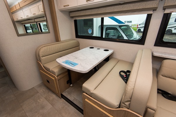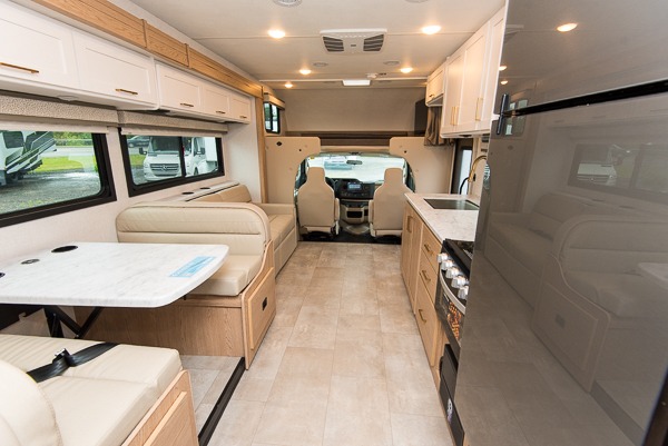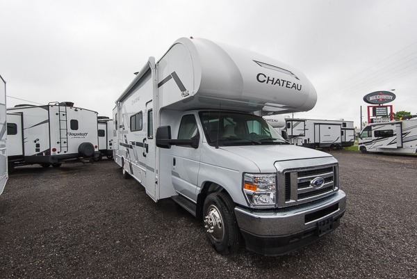 Experience a smooth ride to each destination with the Thor Motor Coach Chateau Class C gas motorhomes! There is a Ford E-Series chassis and each model includes an 8,000 lb. trailer hitch to bring the family car along. They are constructed with a welded tubular aluminum roof, sidewall cage construction, vacu-bond laminated roof, walls, and floor with block foam insulation to keep the heat and air conditioning inside. The slick fiberglass exterior with graphics package and black framed windows are sure to turn heads down the highway too. Inside, you'll be met with residential vinyl flooring, premium window privacy shades, a power bath vent, and pressed laminate kitchen countertops. There is even a tankless water heater for endless hot showers, a 4.0 kw dual gas/LP generator to keep you going, and a 100-watt solar charging system for off-grid capabilities!
