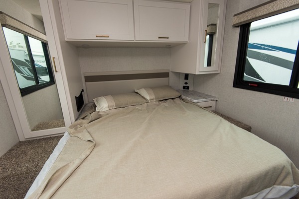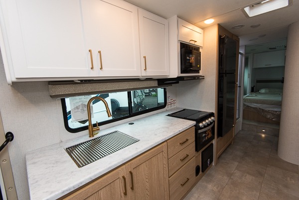 You and your spouse can go on your best adventures in this motorhome! You will have great views out of the many windows when you are indoors, and the power awning offers an outdoor living area protected by the elements when you want some fresh air. The cook will love the large single bowl stainless steel sink with a single handle faucet with a pull-down sprayer when cleaning fruits and veggies, the gas cooktop and microwave when making meals, as well as the 12V refrigerator to hold all the cold items. The slide out creates even more floor space, the 71" Dream Dinette and 66" jackknife sofa offers a place to dine and visit as well as sleep, and the rear private bedroom with a full bathroom just steps away will complete the deal! You will also appreciate the optional exterior TV to watch your favorite shows while breathing in fresh air!