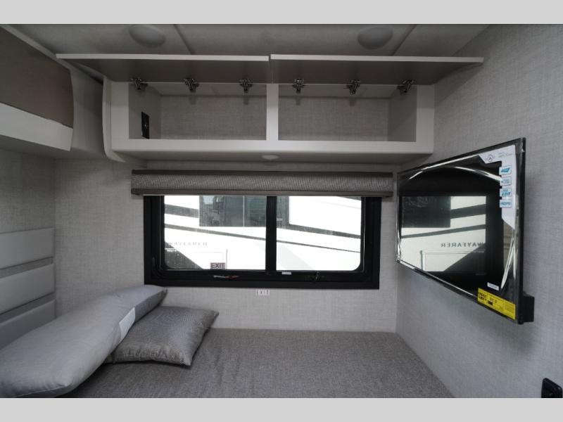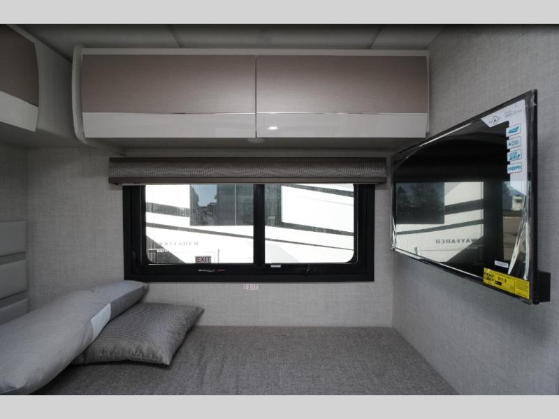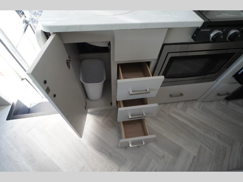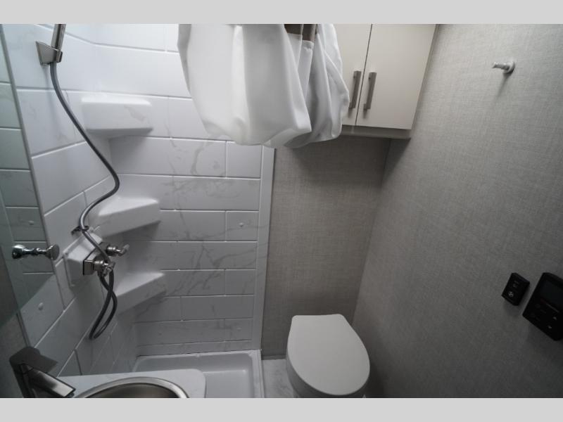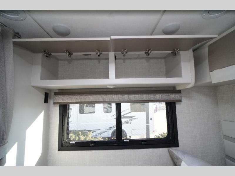 The perfect coach for two whether you are a couple or not! This Compass AWD model features a set of twin beds that can easily convert to a king bed if you like. Enjoy the added space thanks to a slide out jack-knife sofa. You will appreciate the kitchen amenities for light meals and snacks while on the road, plus the onboard bath offers a 27" x 27" radius shower, toilet, and sink which is convenient as well. There are also two 32" Smart TVs in this coach, one over the side entry opposite the seating in front, and one back in the sleeping area at the foot of the roadside twin bed. A built-in skylight offers the ability to stargaze in the front of the coach on a clear night.