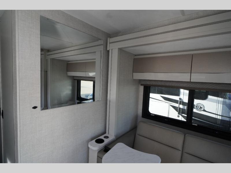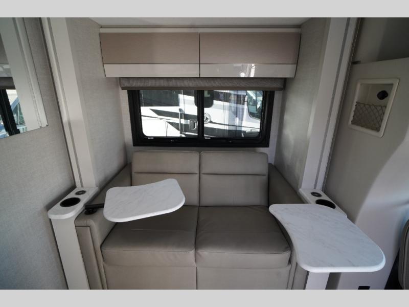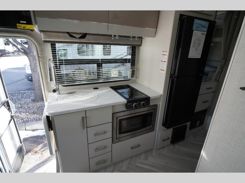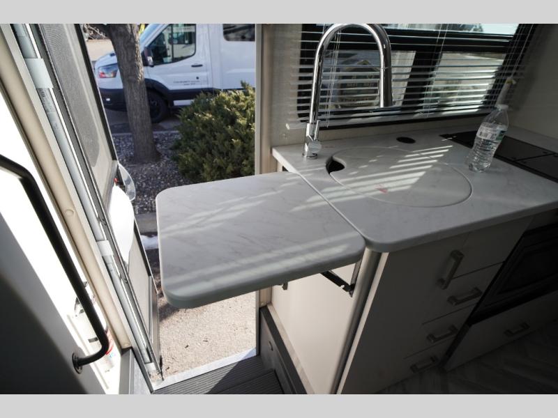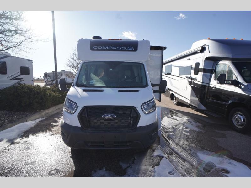 The Thor Motor Coach Compass AWD Class B+ gas motorhome is small but mighty! It includes all-wheel drive, and it is built upon a Ford Transit chassis, 3.5L V6 Eco Boost turbo gas engine, and Ford ten-speed automatic overdrive transmission. The Ford safety features provide excellent care while driving, and you can stay connected to your Compass AWD with the FordPass Connect. The power patio awning with LED lights can be moved out into position with just one touch on your cell phone thanks to the Rapid Camp+ multiplex control system. You will have a 100W solar panel with controller, a 15,000 BTU air conditioner, a Winegard ConnecT 2.0 Wi-Fi/4G/TV antenna, and a tankless water heater as some of the top electrical and plumbing features.