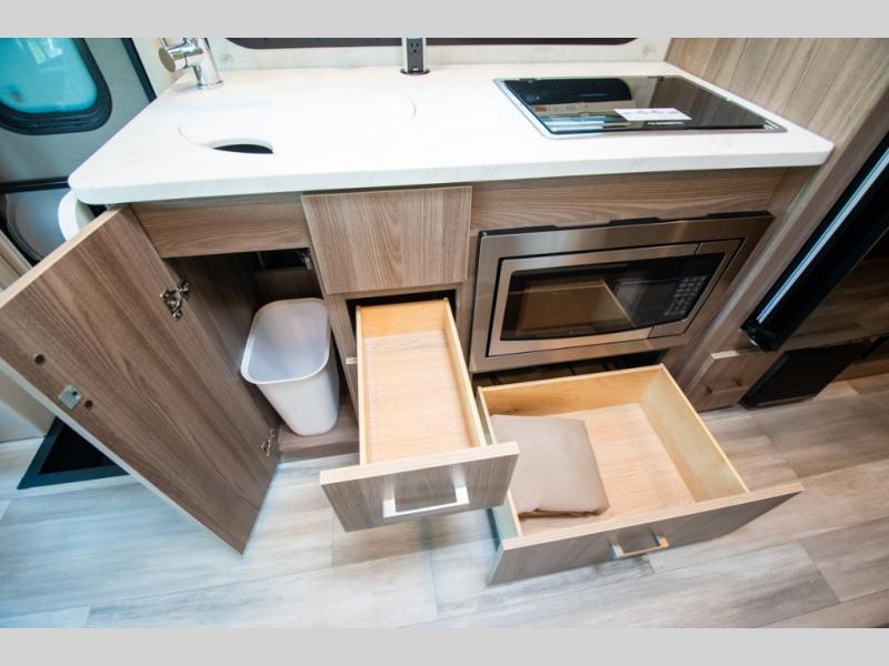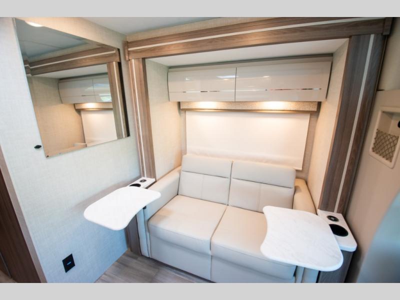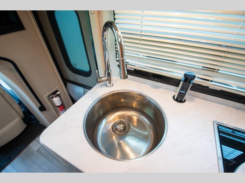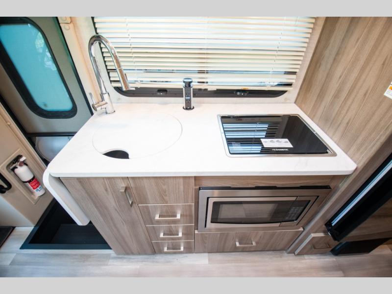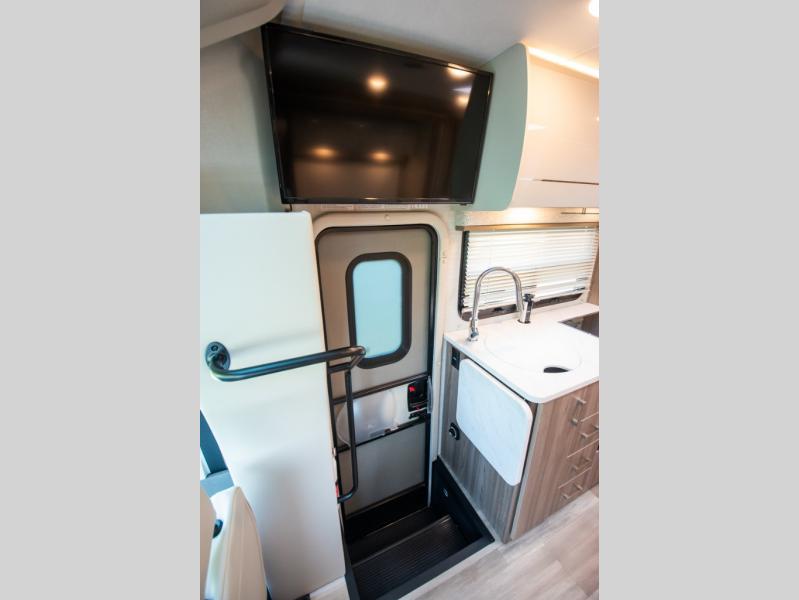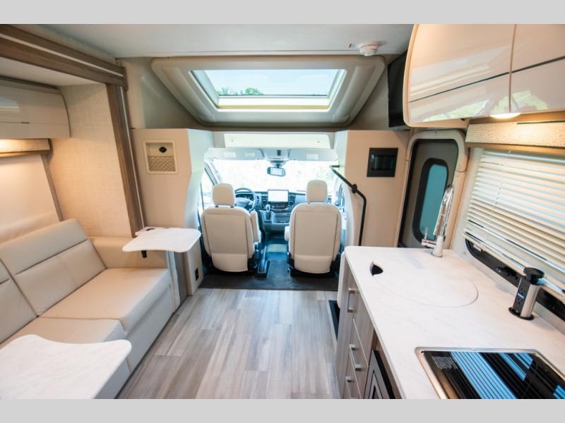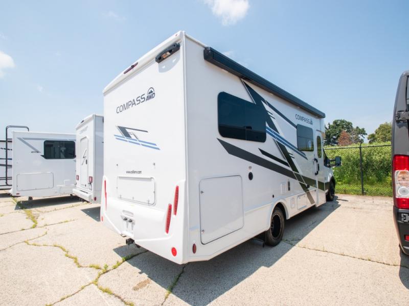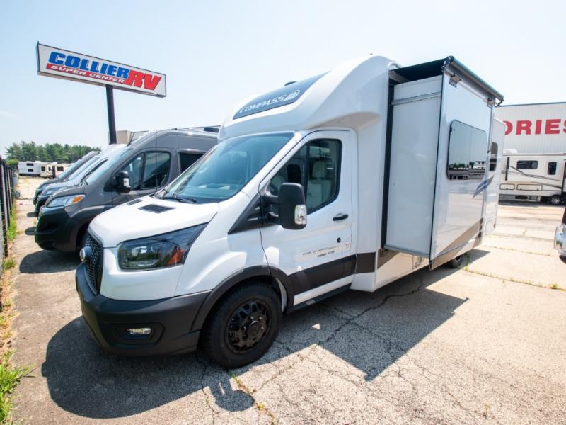 The Thor Motor Coach Compass AWD Class B+ gas motorhome is small but mighty! It includes all-wheel drive, and it is built upon a Ford Transit chassis, 3.5L V6 Eco Boost turbo gas engine, and Ford ten-speed automatic overdrive transmission. The Ford safety features provide excellent care while driving, and you can stay connected to your Compass AWD with the FordPass Connect. The power patio awning with LED lights can be moved out into position with just one touch on your cell phone thanks to the Rapid Camp+ multiplex control system. You will have a 100W solar panel with controller, a 15,000 BTU air conditioner, a Winegard ConnecT 2.0 Wi-Fi/4G/TV antenna, and a tankless water heater as some of the top electrical and plumbing features.