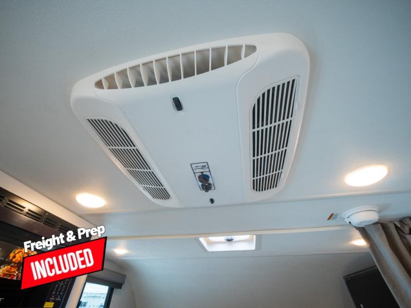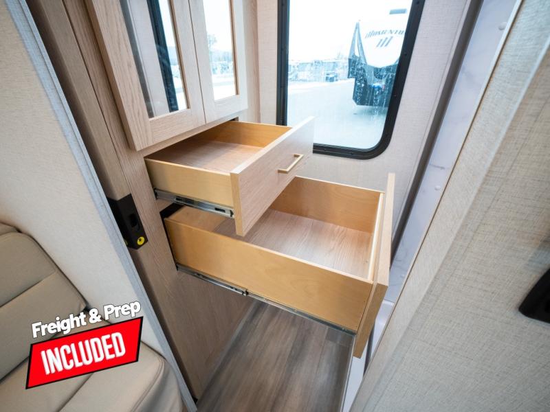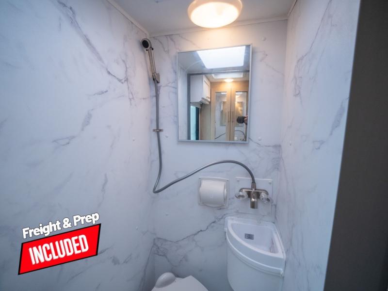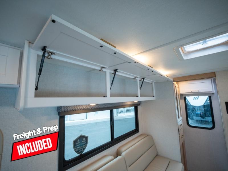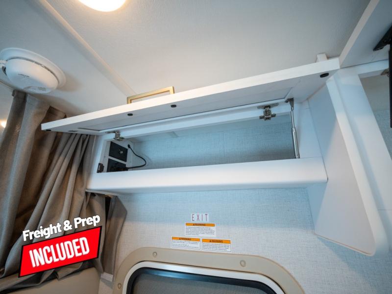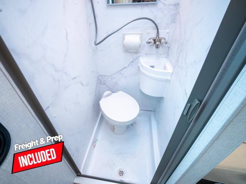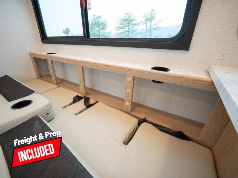 This compact coach will be perfect for your trips across the state or country! Once you park for the day, you can make dinner on the two-burner gas cooktop or in the convection microwave. There is a 12V refrigerator plus an additional quick access pull-out refrigerator to keep drinks stocked! The two twin-size benches/beds can convert to a king-size bed, and there are removable tables here where you can easily dine and play card games at. The rear wet bath includes a power bath vent, a foot flush toilet, and a skylight, plus there is a closet nearby for easy access to clean clothes!