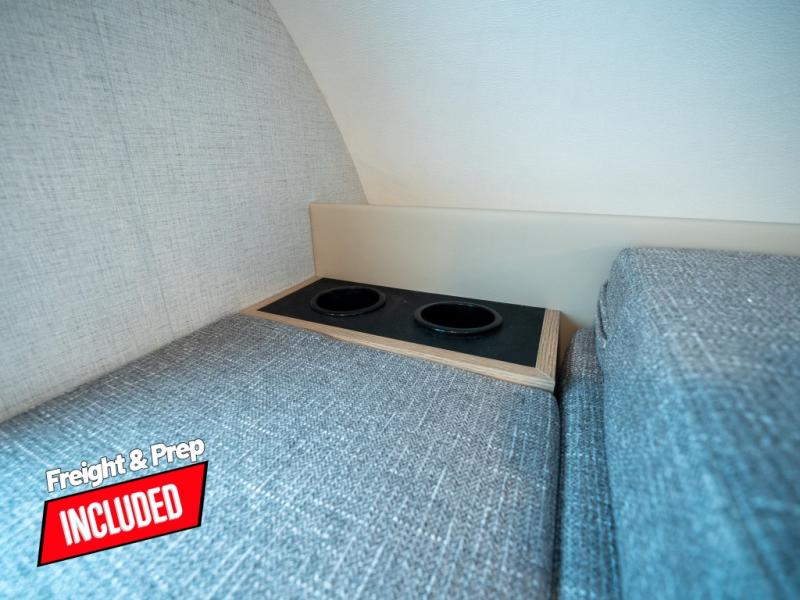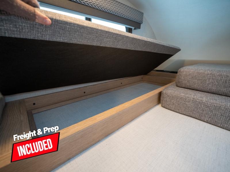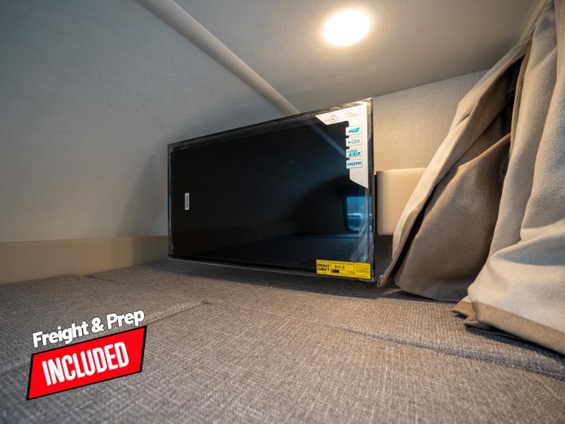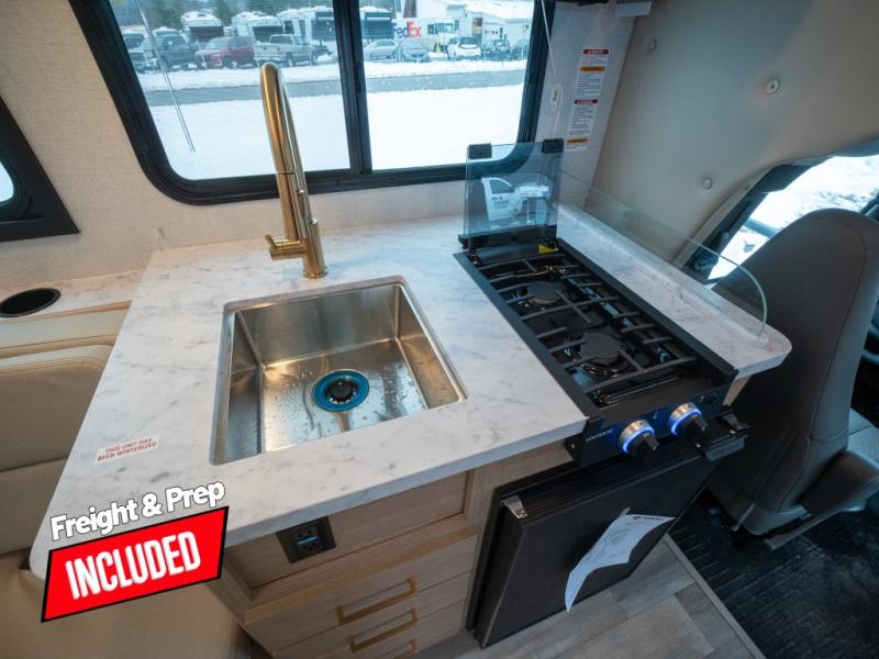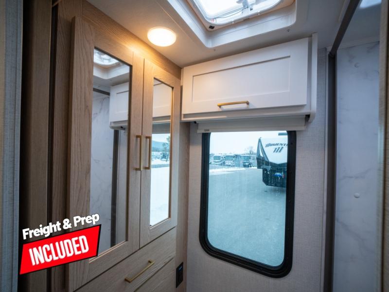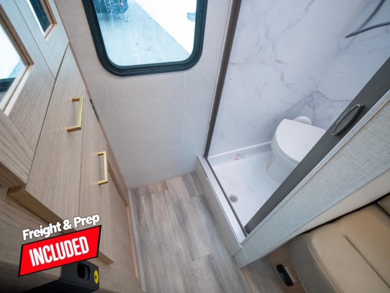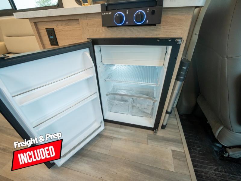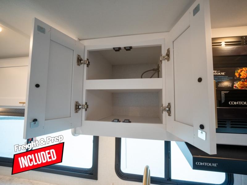 This compact coach will be perfect for your trips across the state or country! Once you park for the day, you can make dinner on the two-burner gas cooktop or in the convection microwave. There is a 12V refrigerator plus an additional quick access pull-out refrigerator to keep drinks stocked! The two twin-size benches/beds can convert to a king-size bed, and there are removable tables here where you can easily dine and play card games at. The rear wet bath includes a power bath vent, a foot flush toilet, and a skylight, plus there is a closet nearby for easy access to clean clothes!