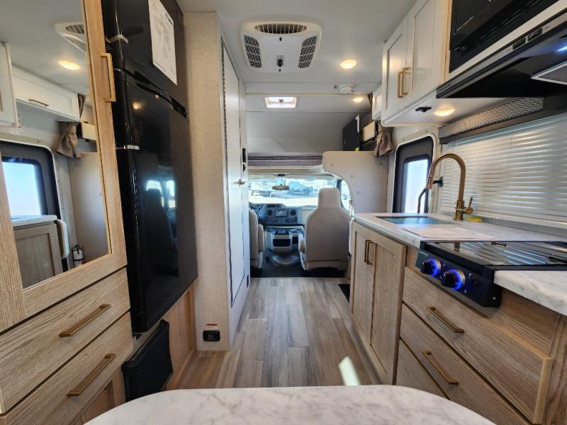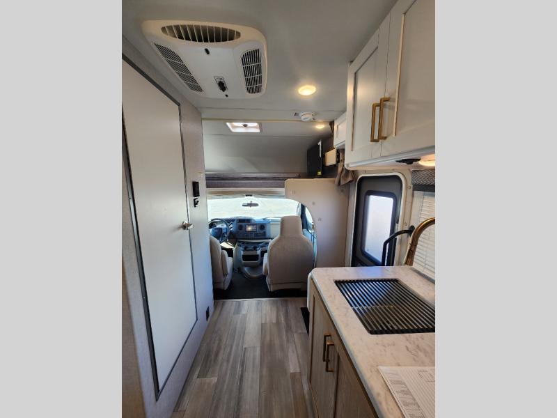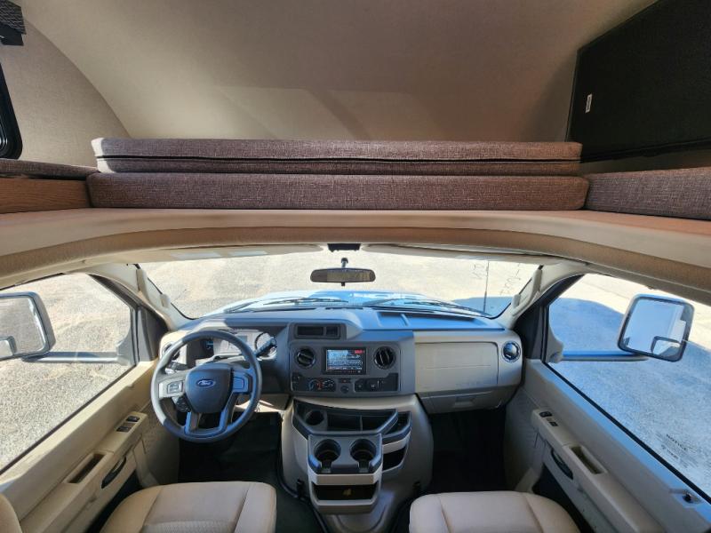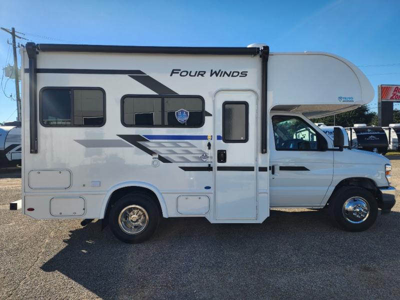 With any Four Winds ESpec Class C gas motorhome by Thor Motor Coach, you will find convenient amenities, a modern interior, and a reliable Ford E-Series chassis, with an optional Chevy chassis on select models to power your adventures. There is welded tubular aluminum roof and sidewall cage construction, a one-piece fiberglass front cap, and a one-piece domed roof membrane for added strength. Residential vinyl flooring will be easy to keep clean, and you'll love the sleek look of the Hampton Collection, two-toned cabinets. These motorhomes also include a 50 state 4.0 kW dual gas/LP generator and a 30-amp shoreline power cord to keep you going, along with a tankless water heater and 13,500 roof front A/C to ensure your comfort!