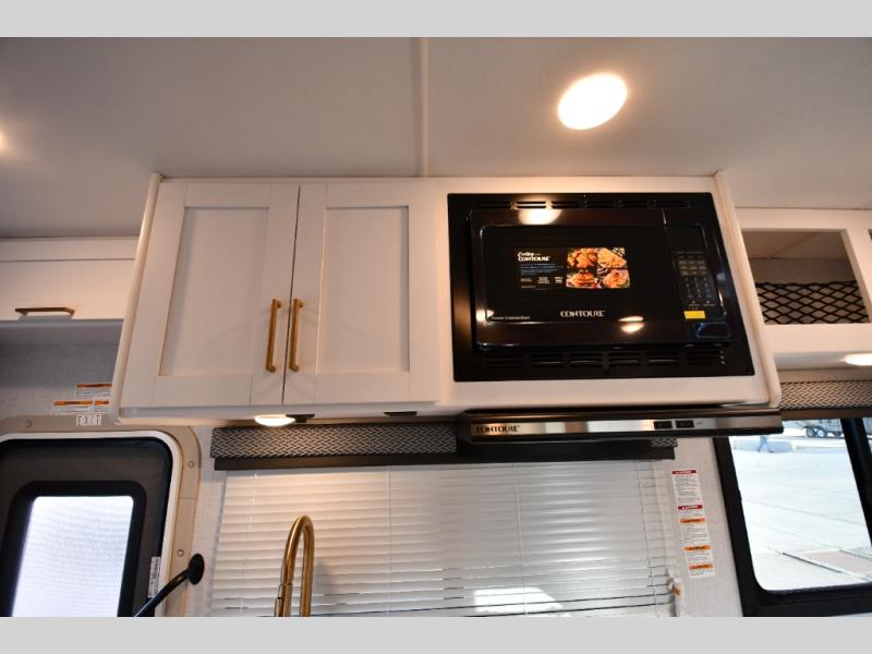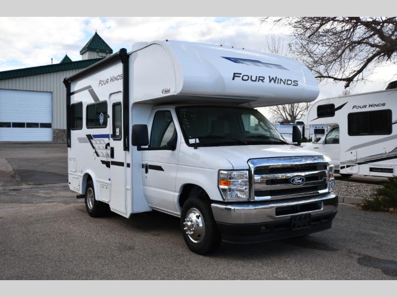 With any Four Winds ESpec Class C gas motorhome by Thor Motor Coach, you will find convenient amenities, a modern interior, and a reliable Ford E-Series chassis, with an optional Chevy chassis on select models to power your adventures. There is welded tubular aluminum roof and sidewall cage construction, a one-piece fiberglass front cap, and a one-piece domed roof membrane for added strength. Residential vinyl flooring will be easy to keep clean, and you'll love the sleek look of the Hampton Collection, two-toned cabinets. These motorhomes also include a 50 state 4.0 kW dual gas/LP generator and a 30-amp shoreline power cord to keep you going, along with a tankless water heater and 13,500 roof front A/C to ensure your comfort!