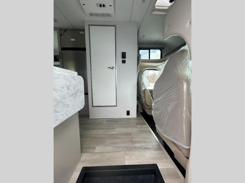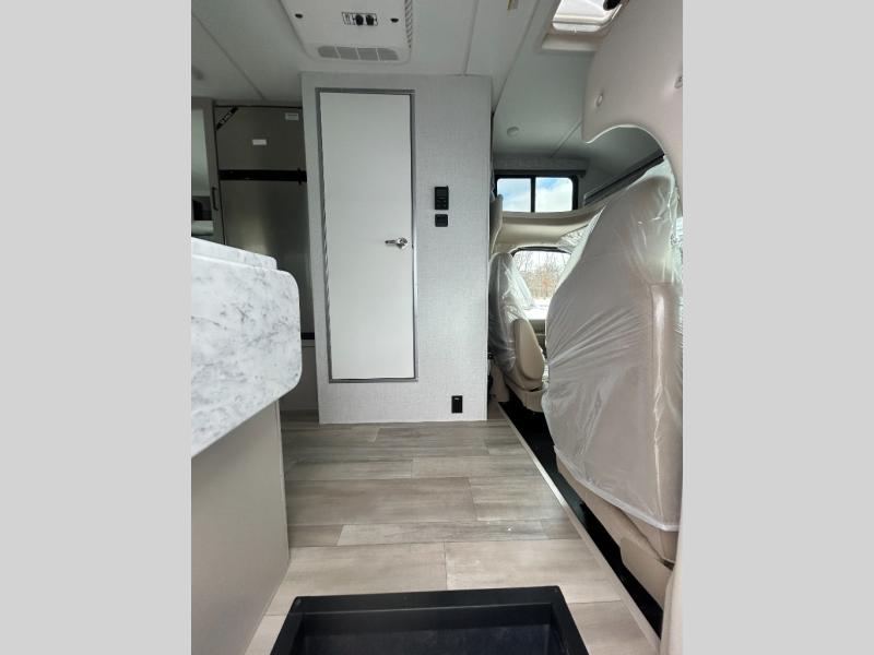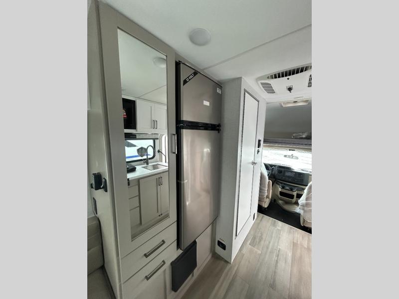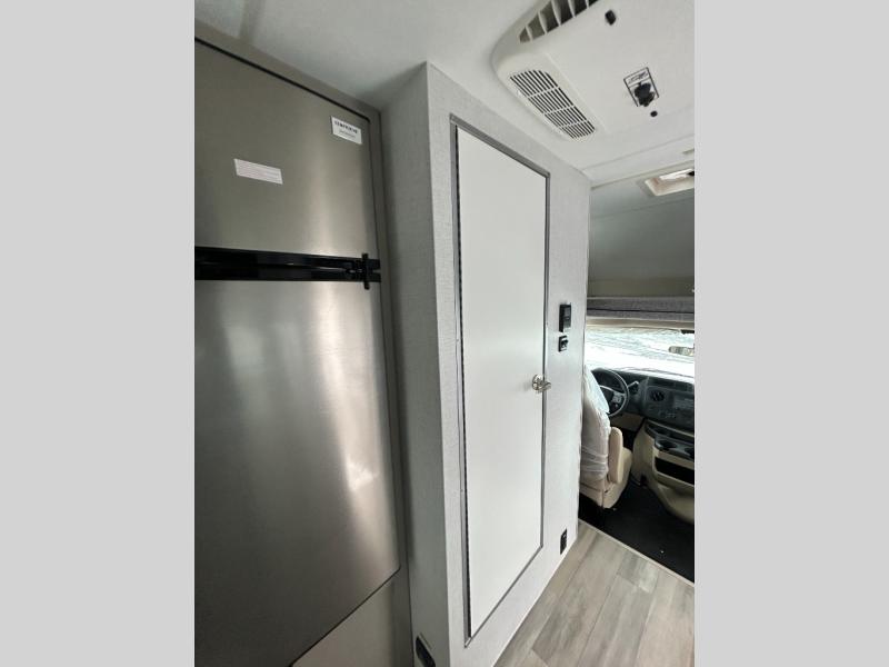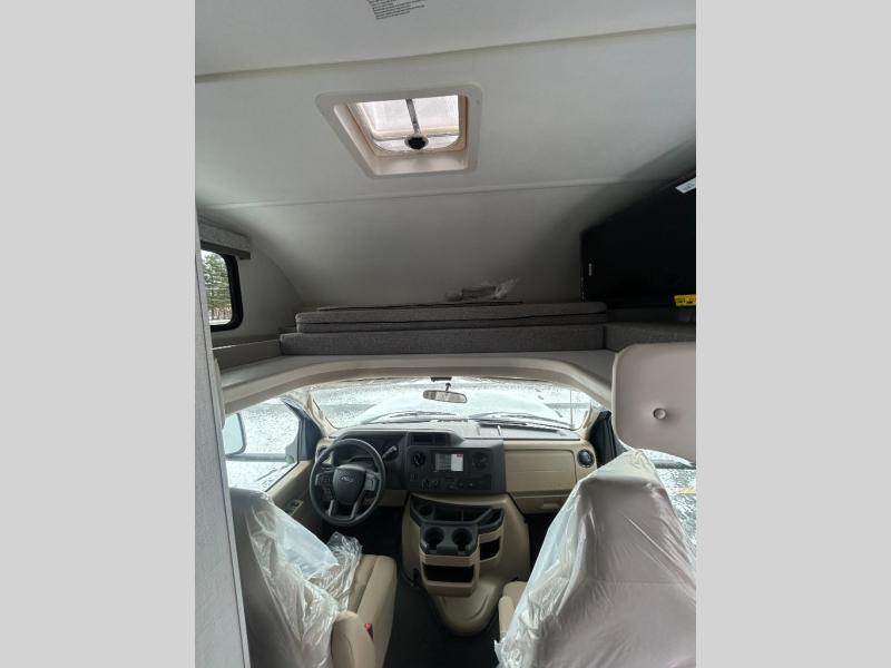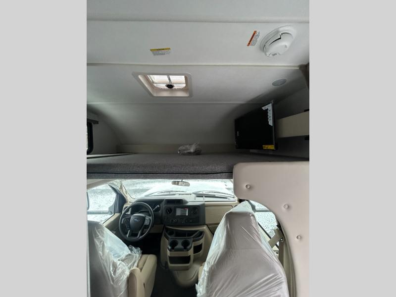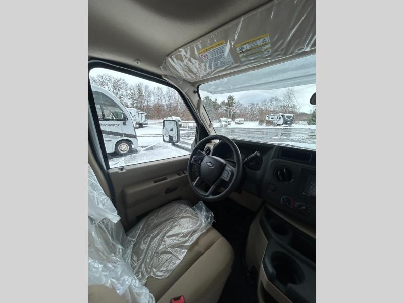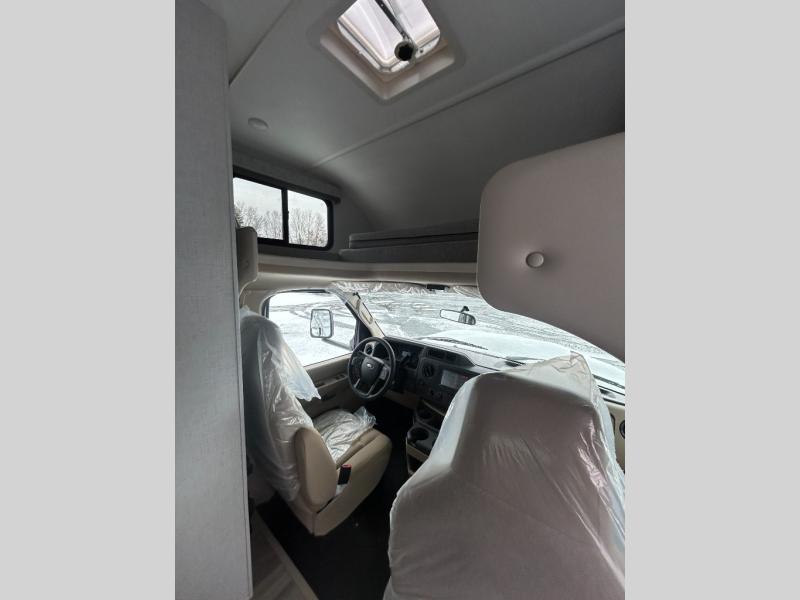 With any Four Winds ESpec Class C gas motorhome by Thor Motor Coach, you will find convenient amenities, a modern interior, and a reliable Ford E-Series chassis, with an optional Chevy chassis on select models to power your adventures. There is welded tubular aluminum roof and sidewall cage construction, a one-piece fiberglass front cap, and a one-piece domed roof membrane for added strength. Residential vinyl flooring will be easy to keep clean, and you'll love the sleek look of the Hampton Collection, two-toned cabinets. These motorhomes also include a 50 state 4.0 kW dual gas/LP generator and a 30-amp shoreline power cord to keep you going, along with a tankless water heater and 13,500 roof front A/C to ensure your comfort!