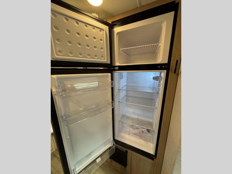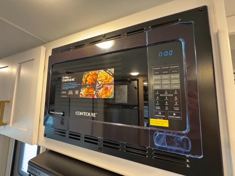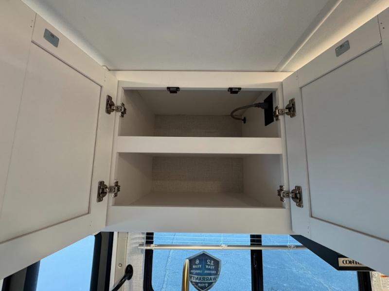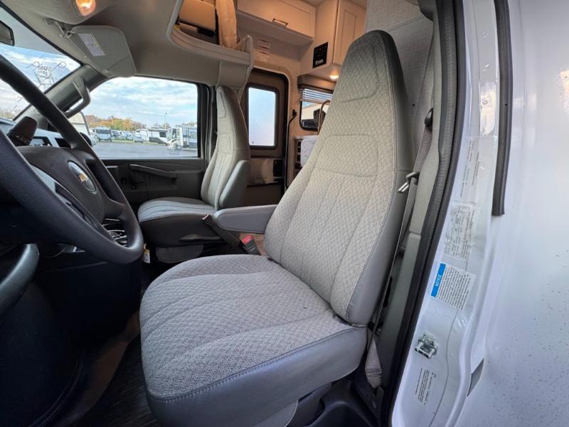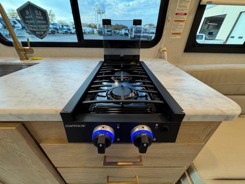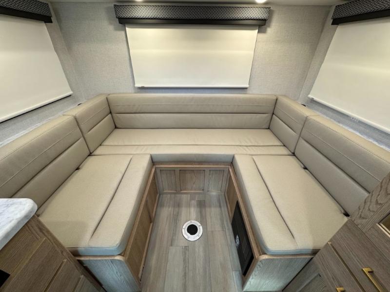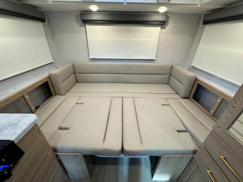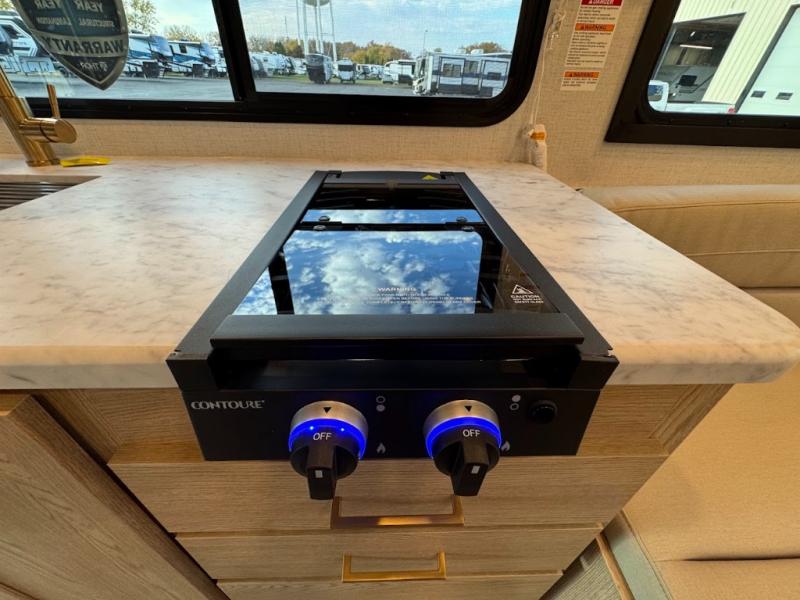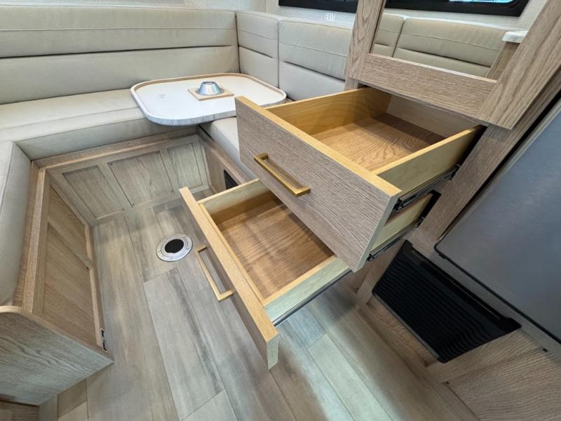 This compact, yet cozy coach is perfect for trips to the campground each weekend! Once you've reached your destination, you can set up the 11' power awning, unload the exterior storage compartments, and relax in your camp chairs. The two burner gas cooktop and convection microwave with an air fryer will let you make meals each day, and there is a 12V refrigerator to keep food fresh. A flip-up counter is another great feature that will give you more prep space! You can freshen up in the wet bath, grab your night clothes from the closet, then convert the U-shaped dinette into a 54" x 77" bed for a great night's rest!