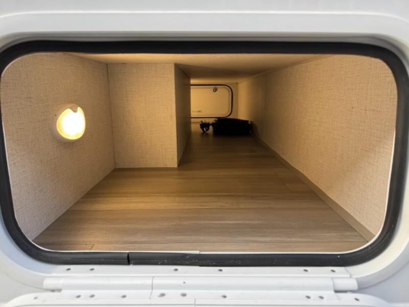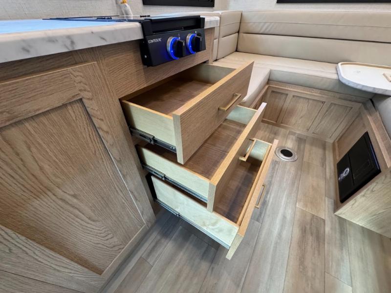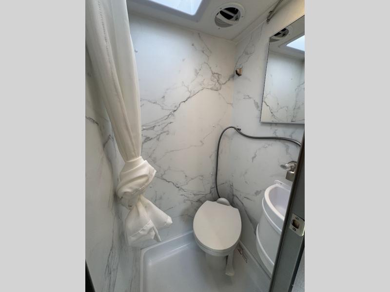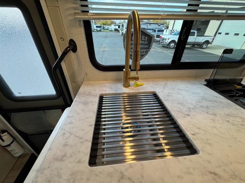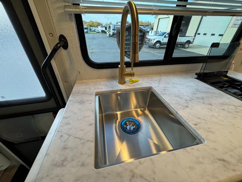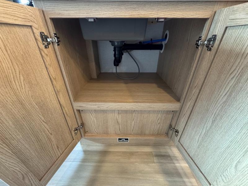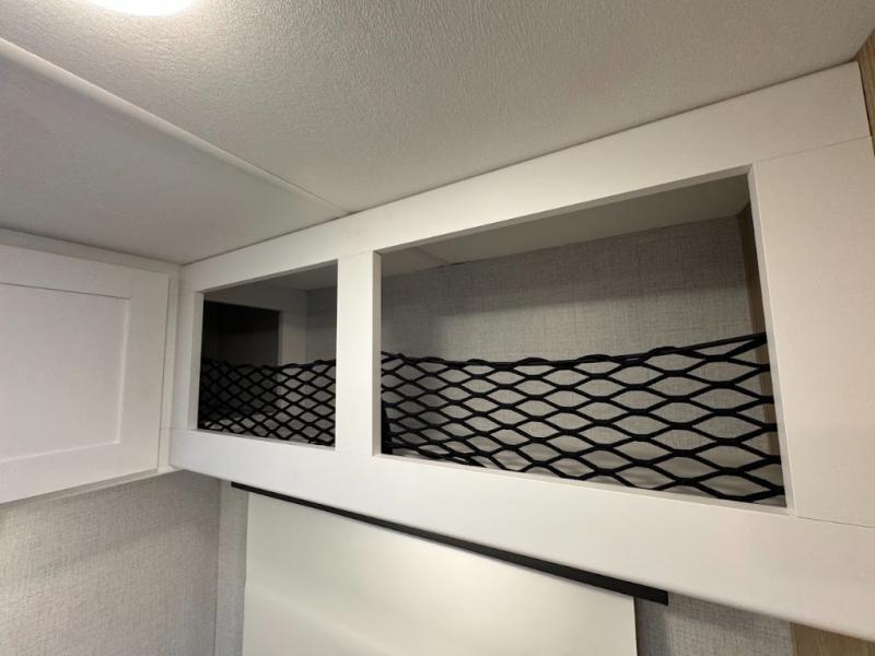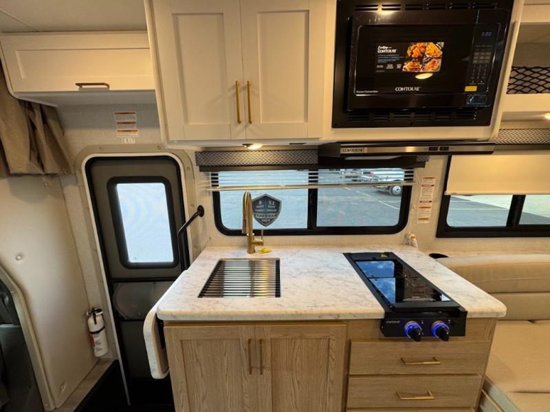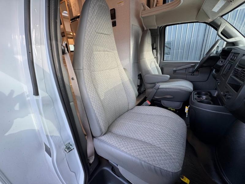 This compact, yet cozy coach is perfect for trips to the campground each weekend! Once you've reached your destination, you can set up the 11' power awning, unload the exterior storage compartments, and relax in your camp chairs. The two burner gas cooktop and convection microwave with an air fryer will let you make meals each day, and there is a 12V refrigerator to keep food fresh. A flip-up counter is another great feature that will give you more prep space! You can freshen up in the wet bath, grab your night clothes from the closet, then convert the U-shaped dinette into a 54" x 77" bed for a great night's rest!