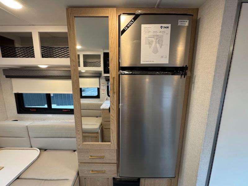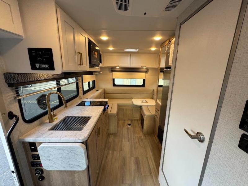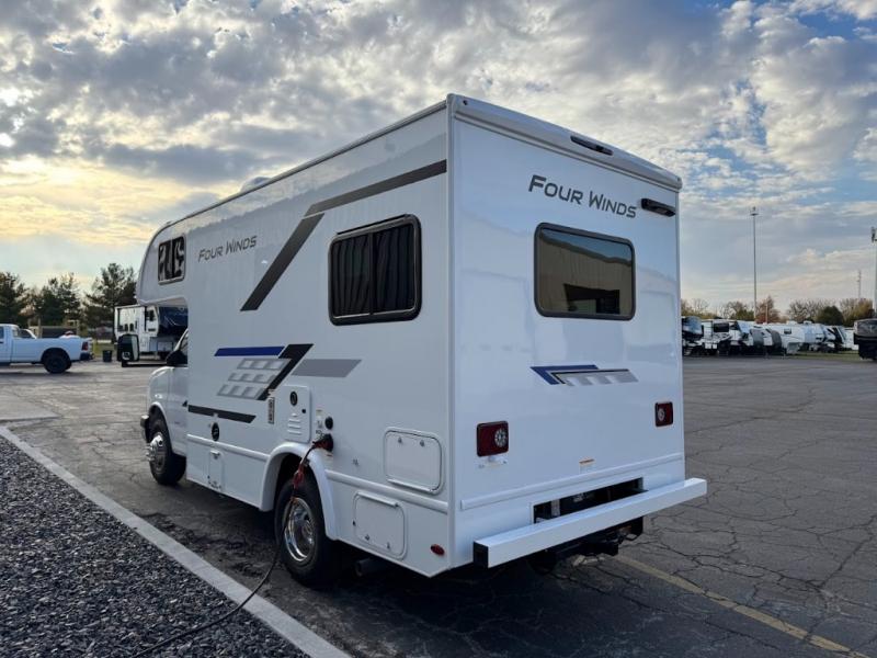 With any Four Winds ESpec Class C gas motorhome by Thor Motor Coach, you will find convenient amenities, a modern interior, and a reliable chassis. There is welded tubular aluminum roof and sidewall cage construction, a one-piece fiberglass front cap, and a one-piece domed roof membrane for added strength. Residential vinyl flooring will be easy to keep clean, and you'll love the sleek look of the Hampton Collection, two-toned cabinets. These motorhomes also include a 50 state 4.0 kW dual gas/LP generator and a 30-amp shoreline power cord to keep you going, along with a tankless water heater and 13,500 roof front A/C to ensure your comfort!