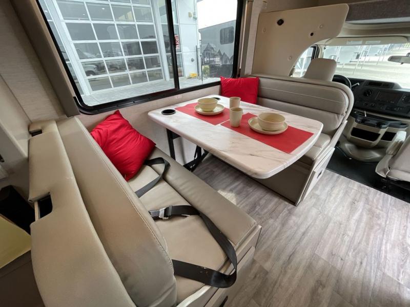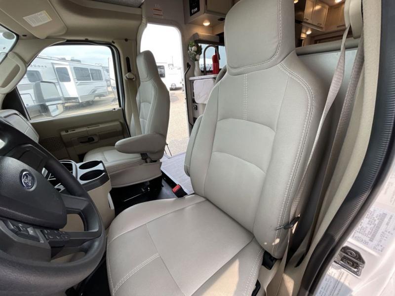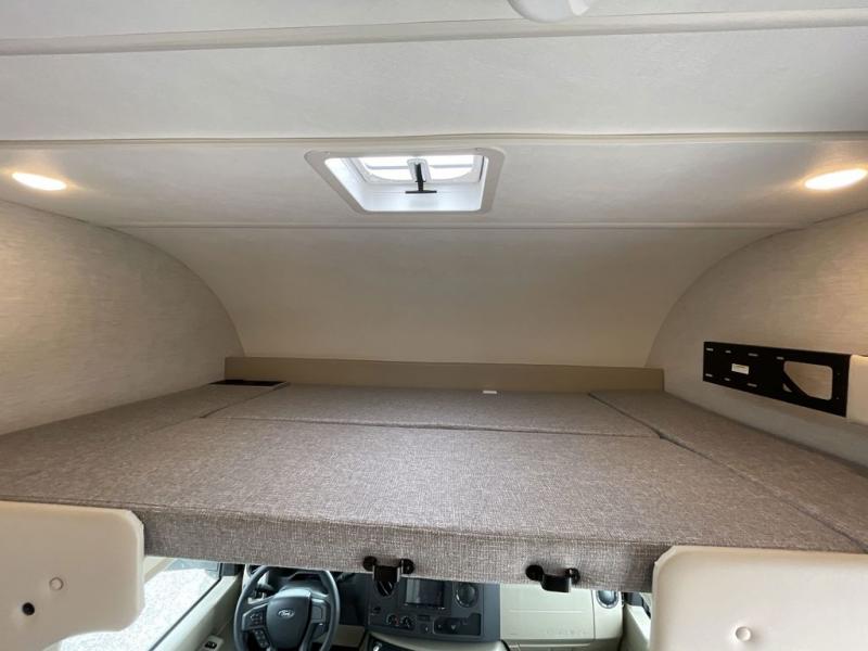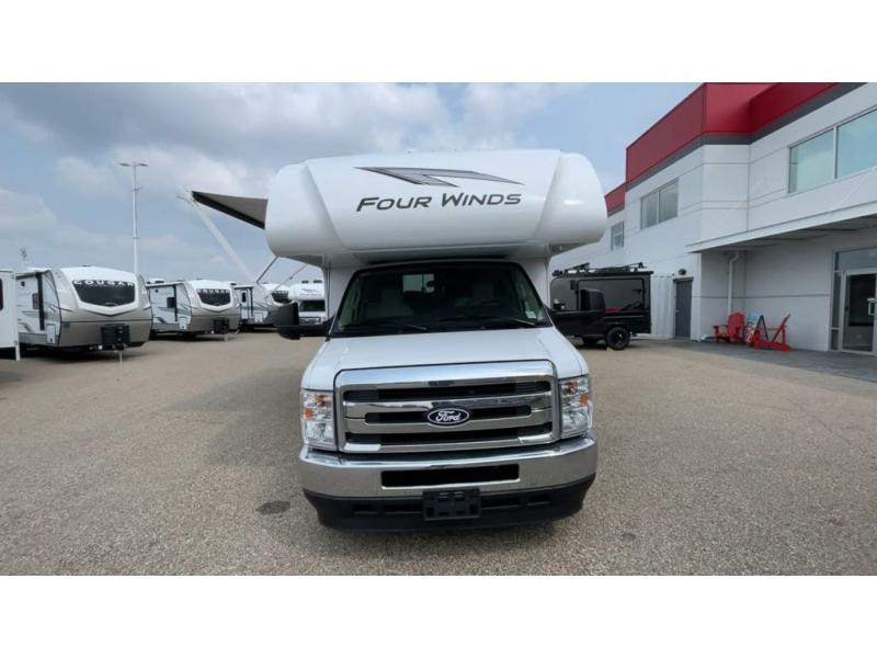 With any Four Winds ESpec Class C gas motorhome by Thor Motor Coach, you will find convenient amenities, a modern interior, and a reliable Ford E-Series chassis, with an optional Chevy chassis on select models to power your adventures. There is welded tubular aluminum roof and sidewall cage construction, a one-piece fiberglass front cap, and a one-piece domed roof membrane for added strength. Residential vinyl flooring will be easy to keep clean, and you'll love the sleek look of the Hampton Collection, two-toned cabinets. These motorhomes also include a 50 state 4.0 kW dual gas/LP generator and a 30-amp shoreline power cord to keep you going, along with a tankless water heater and 13,500 roof front A/C to ensure your comfort!