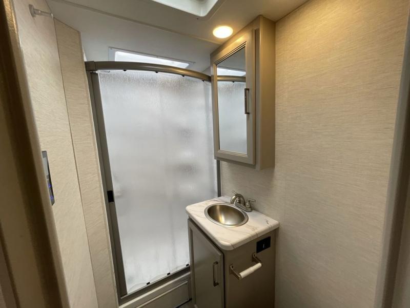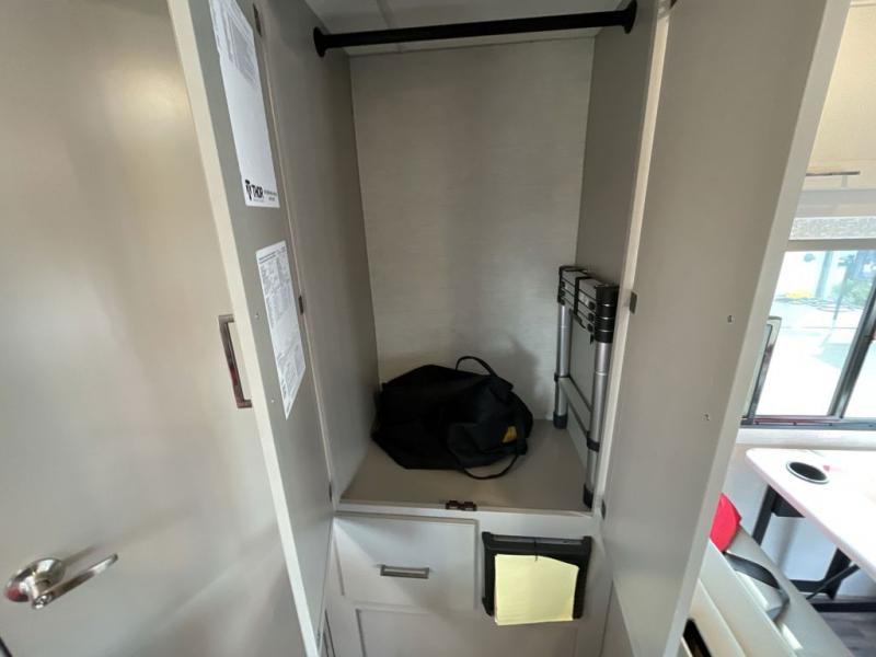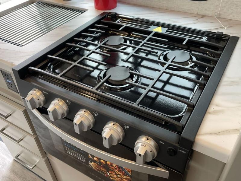 It won't be hard to find comfort in this coach for five! You can freshen up in the rear corner full bath once you've set up camp, then make lunch on the two burner gas cooktop or convection microwave with an air fryer. There is also a 12V refrigerator for cold items and a flip-up countertop for more space. Whether you dine at the Dream Dinette or take your plate outdoors under the 15' power awning, you're sure to have a great time in this motorhome. The rear corner full-size bed will provide a comfy place to rest your head at night, while your guests take the dinette and cab-over bunk!