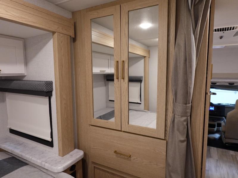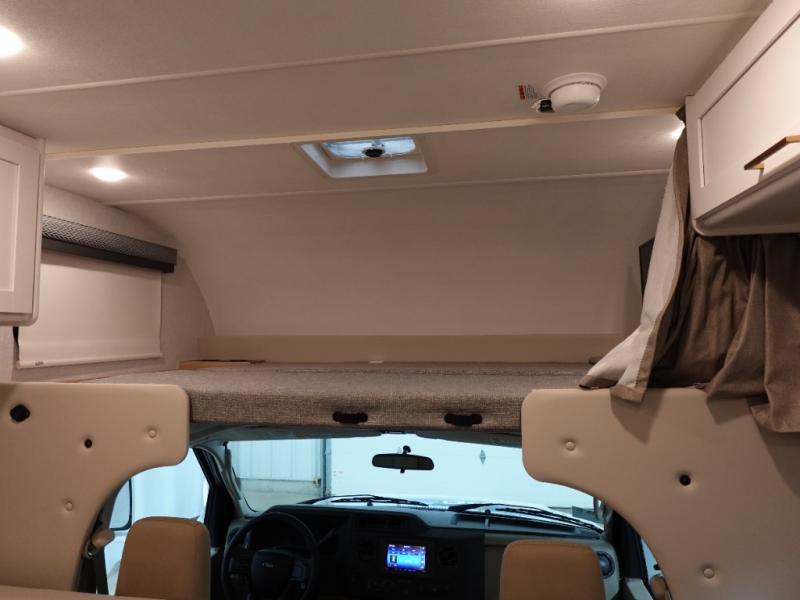 With any Four Winds ESpec Class C gas motorhome by Thor Motor Coach, you will find convenient amenities, a modern interior, and a reliable Ford E-Series chassis, to power your adventures. There is welded tubular aluminum roof and sidewall cage construction, a one-piece fiberglass front cap, and a one-piece domed roof membrane for added strength. Residential vinyl flooring will be easy to keep clean, and you'll love the sleek look of the Hampton Collection, two-toned cabinets. These motorhomes also include a 50 state 4.0 kW dual gas/LP generator and a 30-amp shoreline power cord to keep you going, along with a tankless water heater and 13,500 roof front A/C to ensure your comfort!