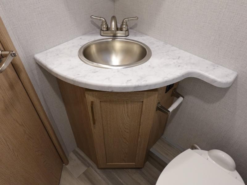 It won't be hard to find comfort in this coach for five! You can freshen up in the rear corner full bath once you've set up camp, then make lunch on the two burner gas cooktop or convection microwave with an air fryer. There is also a 12V refrigerator for cold items and a flip-up countertop for more space. Whether you dine at the Dream Dinette or take your plate outdoors under the 15' power awning, you're sure to have a great time in this motorhome. There is a semi-private bedroom with a 60" x 74" RV queen bed slide and bedroom TV prep if you want the option to watch movies in bed. And your guests can take the Dream Dinette and cab-over bunk at night!