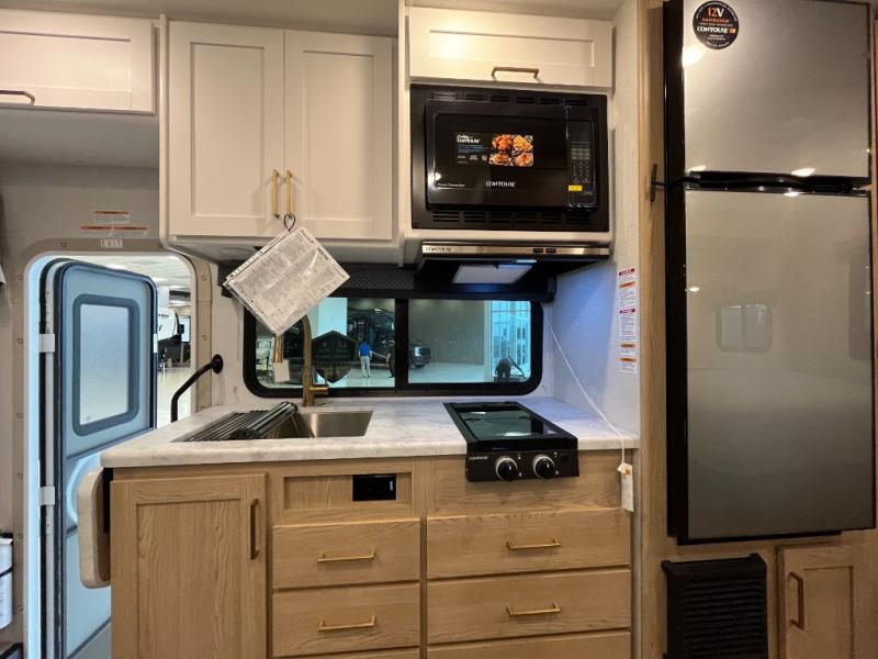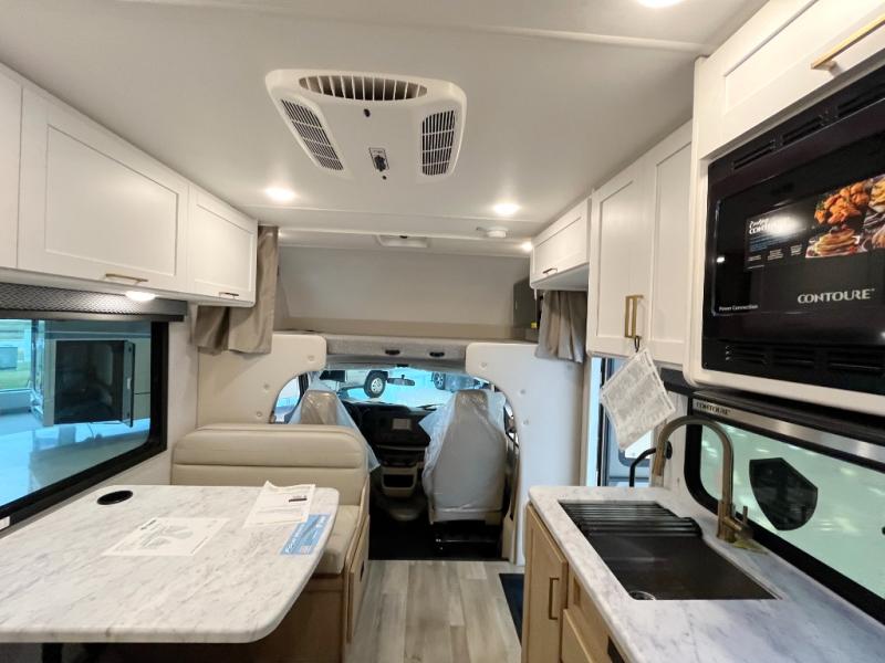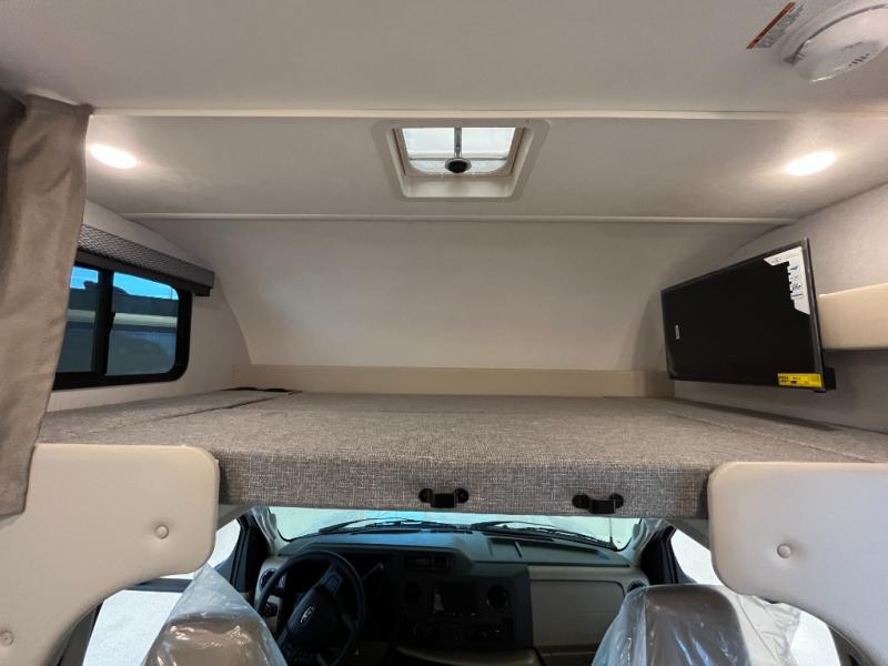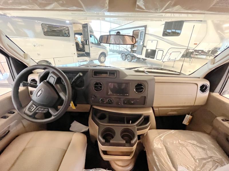 With any Four Winds ESpec Class C gas motorhome by Thor Motor Coach, you will find convenient amenities, a modern interior, and a reliable Ford E-Series chassis, with an optional Chevy chassis on select models to power your adventures. There is welded tubular aluminum roof and sidewall cage construction, a one-piece fiberglass front cap, and a one-piece domed roof membrane for added strength. Residential vinyl flooring will be easy to keep clean, and you'll love the sleek look of the Hampton Collection, two-toned cabinets. These motorhomes also include a 50 state 4.0 kW dual gas/LP generator and a 30-amp shoreline power cord to keep you going, along with a tankless water heater and 13,500 roof front A/C to ensure your comfort!