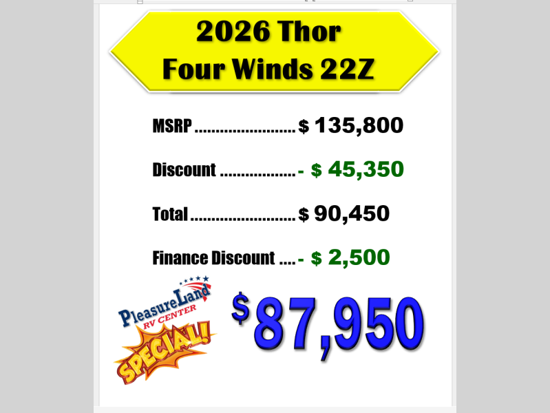 New 2026 Thor Motor Coach Four Winds 22Z Motor Home Class C