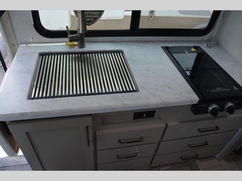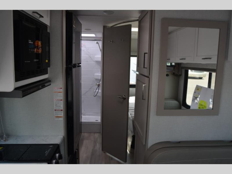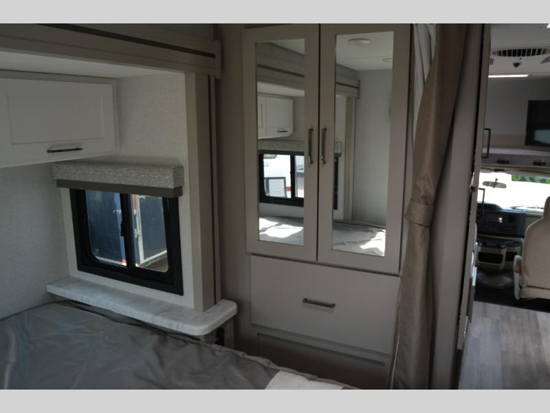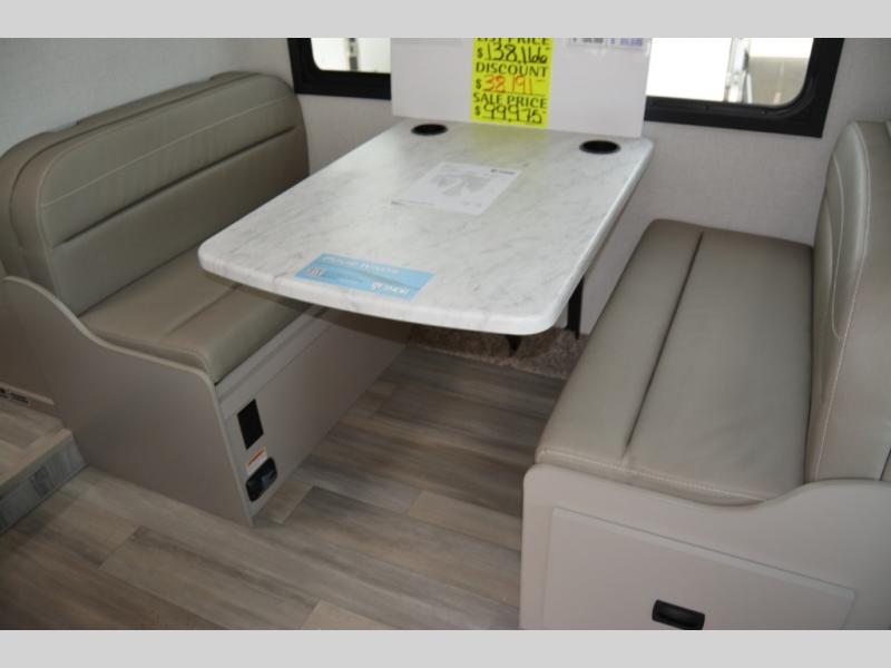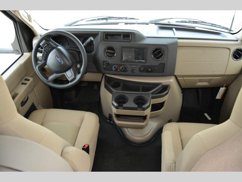 With any Four Winds ESpec Essential Class C gas motorhome by Thor Motor Coach, you will find convenient amenities, a modern interior, and a reliable Ford E-Series chassis, with an optional Chevy chassis on select models to power your adventures. There is welded tubular aluminum roof and sidewall cage construction, a one-piece fiberglass front cap, and premium one-piece Crossflex exterior roofing for added strength. Residential vinyl flooring will be easy to keep clean, and you'll love the sleek look of the Coastline Grey flat panel cabinet doors. These motorhomes also include a 4.0 kW gas generator and a 30-amp shoreline power cord to keep you going, along with a tankless water heater and 13,500 roof front A/C to ensure your comfort!
