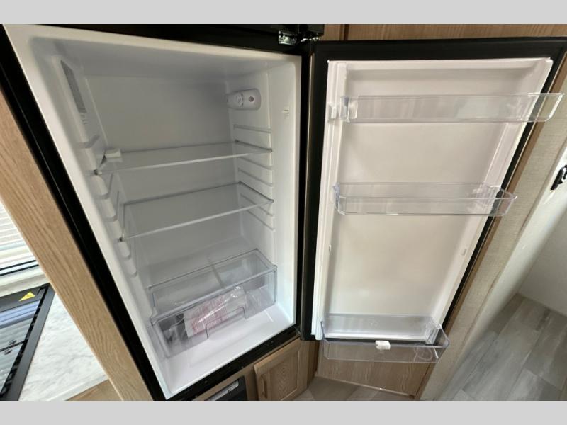 It won't be hard to find comfort in this coach for five! You can freshen up in the rear corner full bath once you've set up camp, then make lunch on the two burner gas cooktop or convection microwave with an air fryer. There is also a 12V refrigerator for cold items and a flip-up countertop for more space. Whether you dine at the Dream Dinette or take your plate outdoors under the 15' power awning, you're sure to have a great time in this motorhome. There is a semi-private bedroom with a 60" x 74" RV queen bed slide and bedroom TV prep if you want the option to watch movies in bed. And your guests can take the Dream Dinette and cab-over bunk at night!