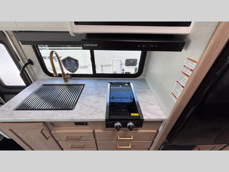 With any Four Winds ESpec Class C gas motorhome by Thor Motor Coach, you will find convenient amenities, a modern interior, and a reliable Ford E-Series chassis, with an optional Chevy chassis on select models to power your adventures. There is welded tubular aluminum roof and sidewall cage construction, a one-piece fiberglass front cap, and a one-piece domed roof membrane for added strength. Residential vinyl flooring will be easy to keep clean, and you'll love the sleek look of the Hampton Collection, two-toned cabinets. These motorhomes also include a 50 state 4.0 kW dual gas/LP generator and a 30-amp shoreline power cord to keep you going, along with a tankless water heater and 13,500 roof front A/C to ensure your comfort!